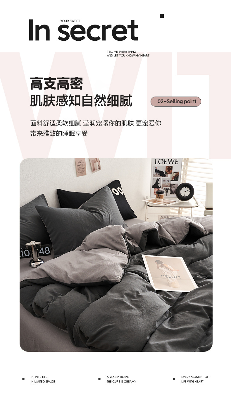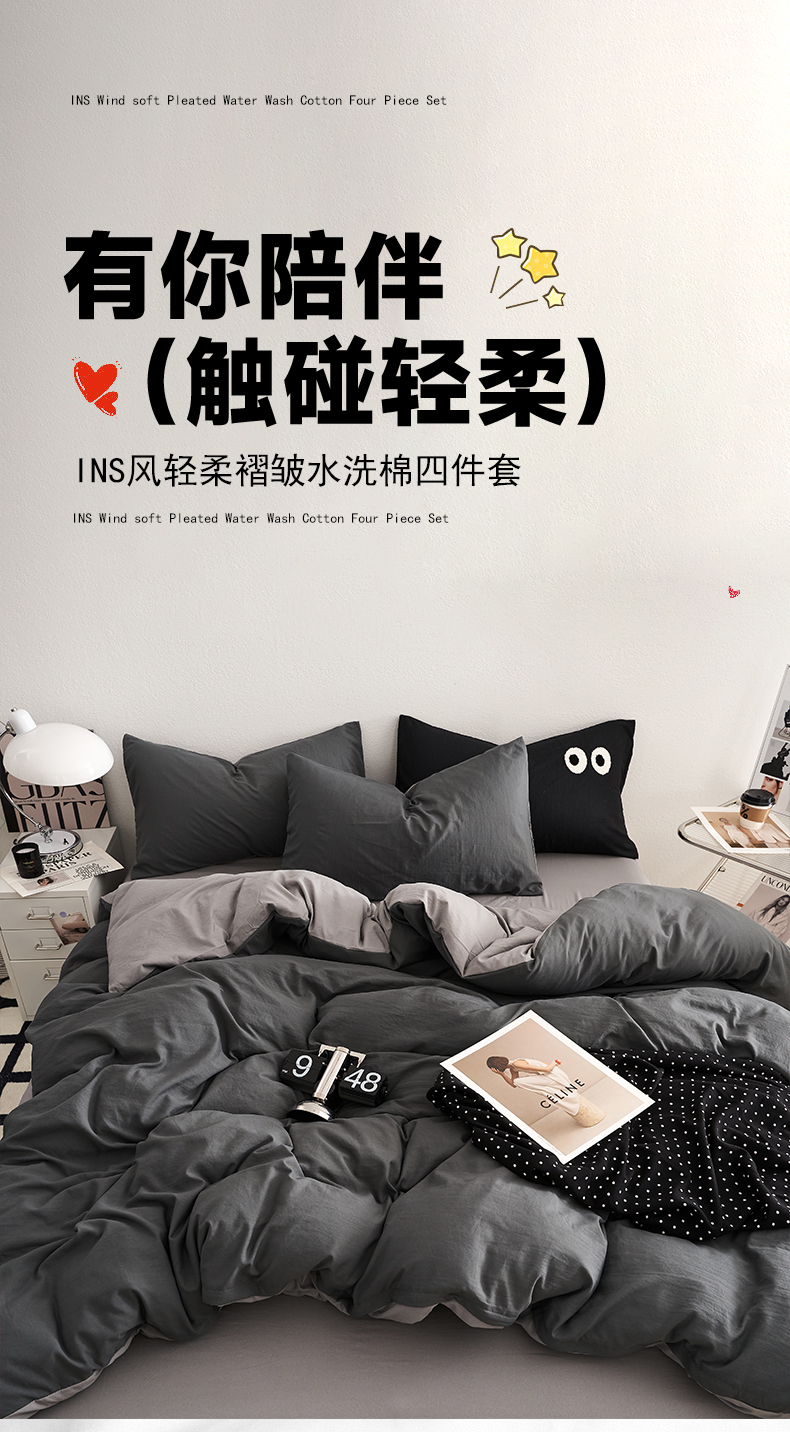 当前位置: 91家纺网 > 商品网购 > 床品套件 > 四件套 > 水洗棉四件套 > 卡迪熊家纺 2024新款ins风超柔褶皱亲肤磨毛水洗m四件套双拼系列 深浅灰