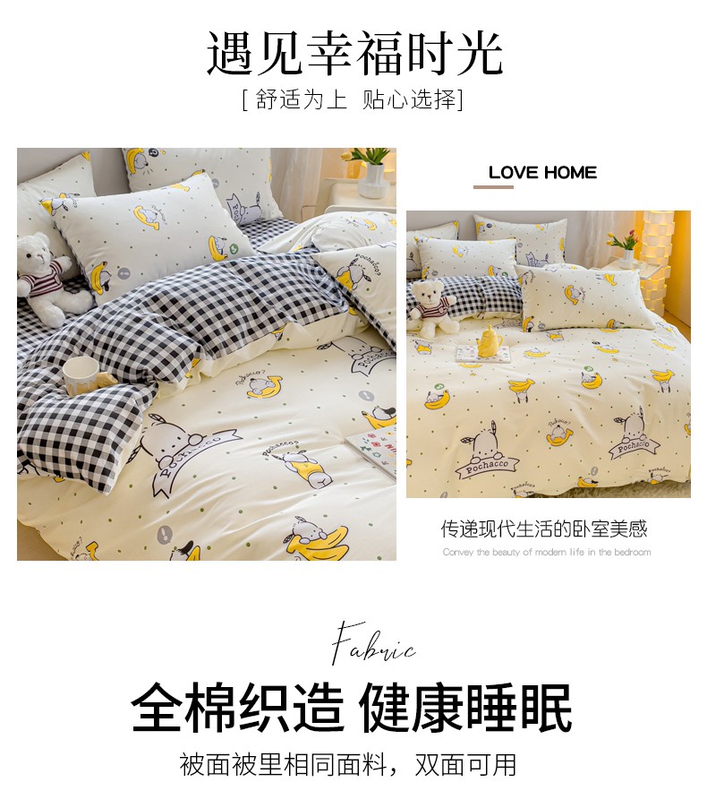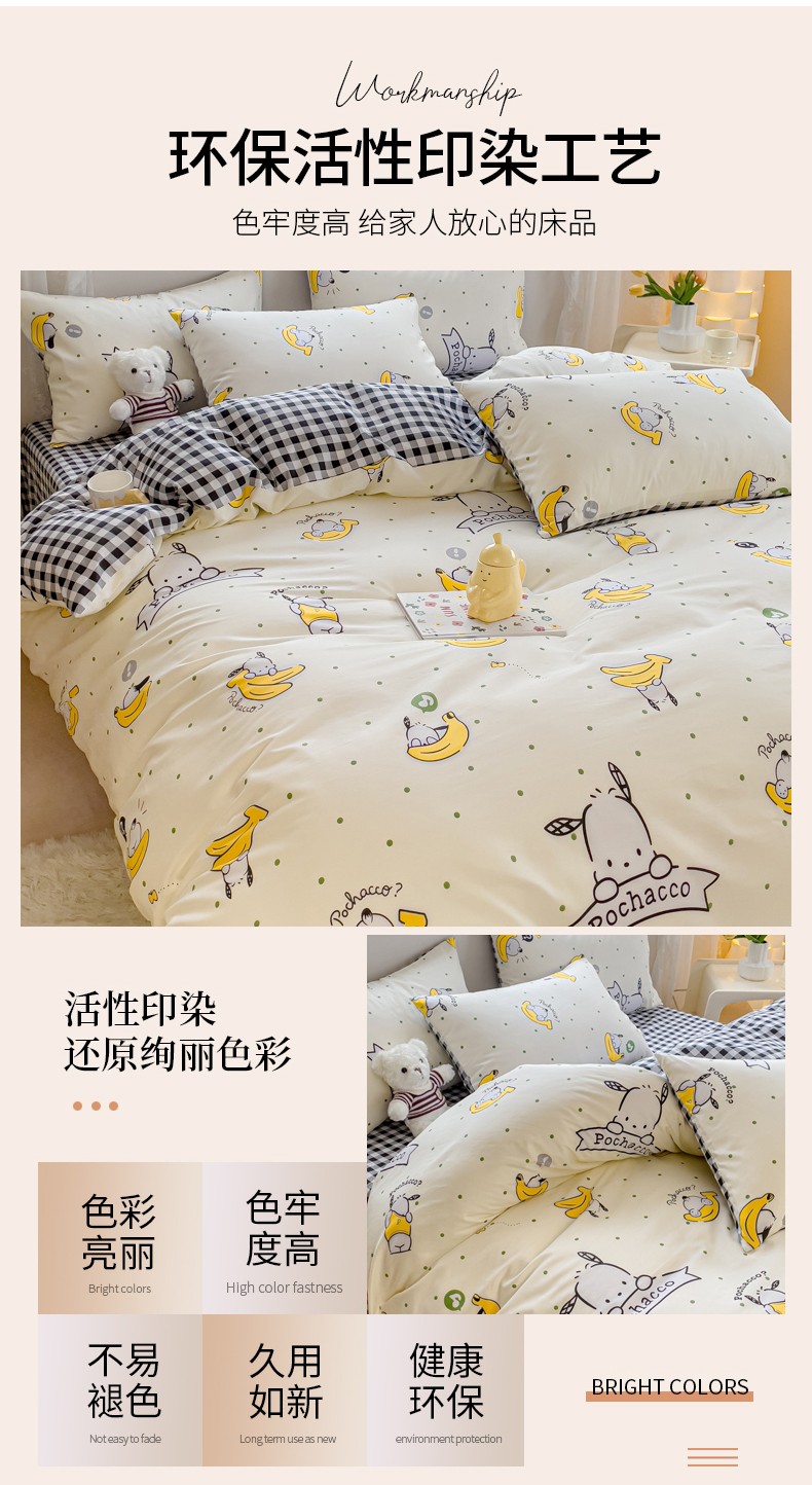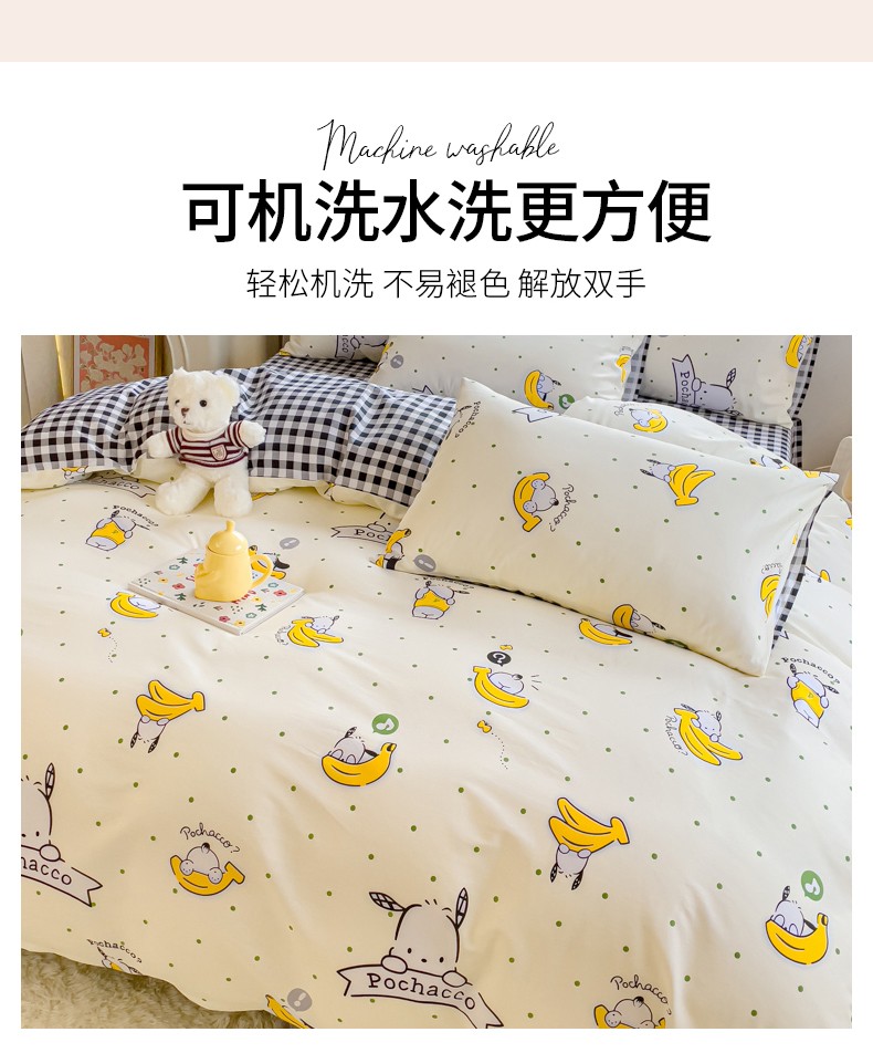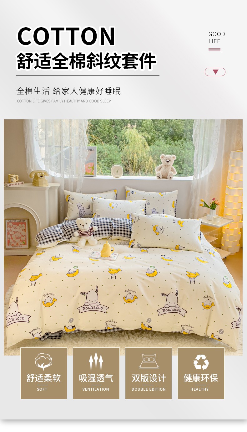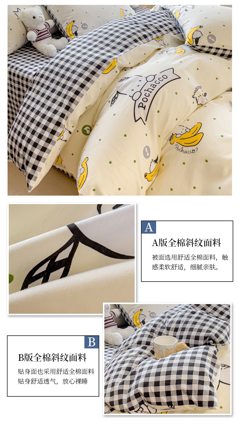 当前位置: 91家纺网 > 商品网购 > 床品套件 > 四件套 > 全棉普通四件套 > 金丝鸟家纺 2023新款全棉印花可爱卡通帕恰狗四件套 香蕉帕恰狗