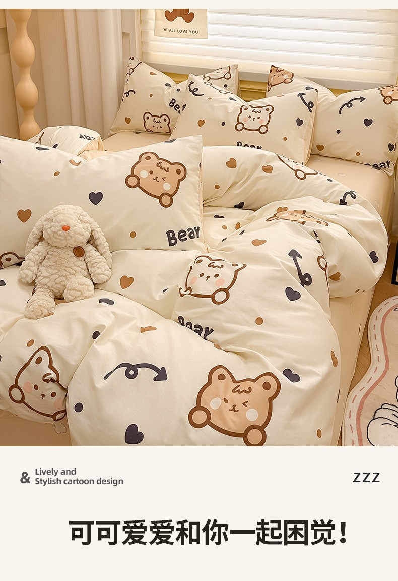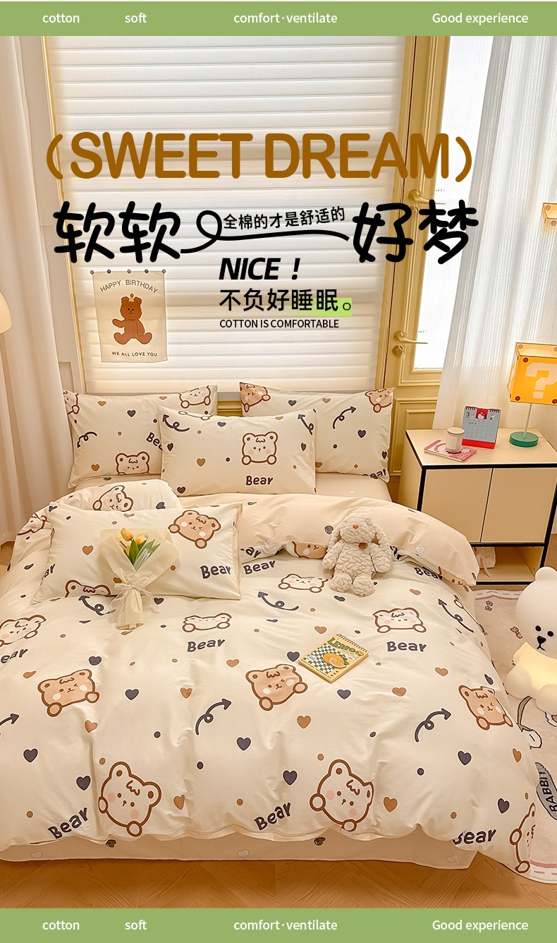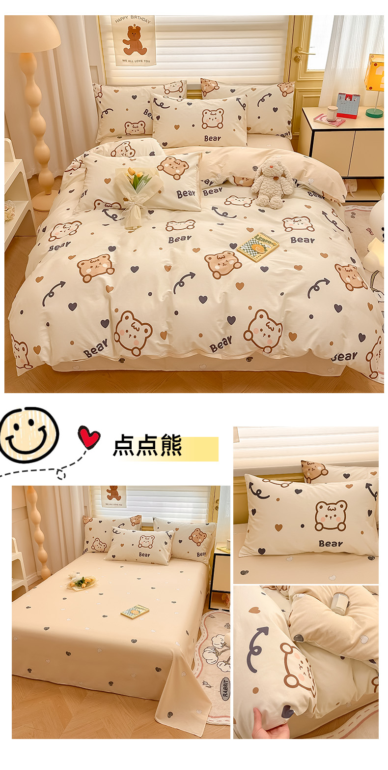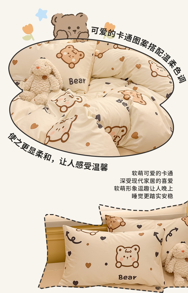 当前位置: 91家纺网 > 商品网购 > 床品套件 > 四件套 > 全棉普通四件套 > 晨希 2024春夏新款全棉13372印花四件套—卡通系列 点点熊