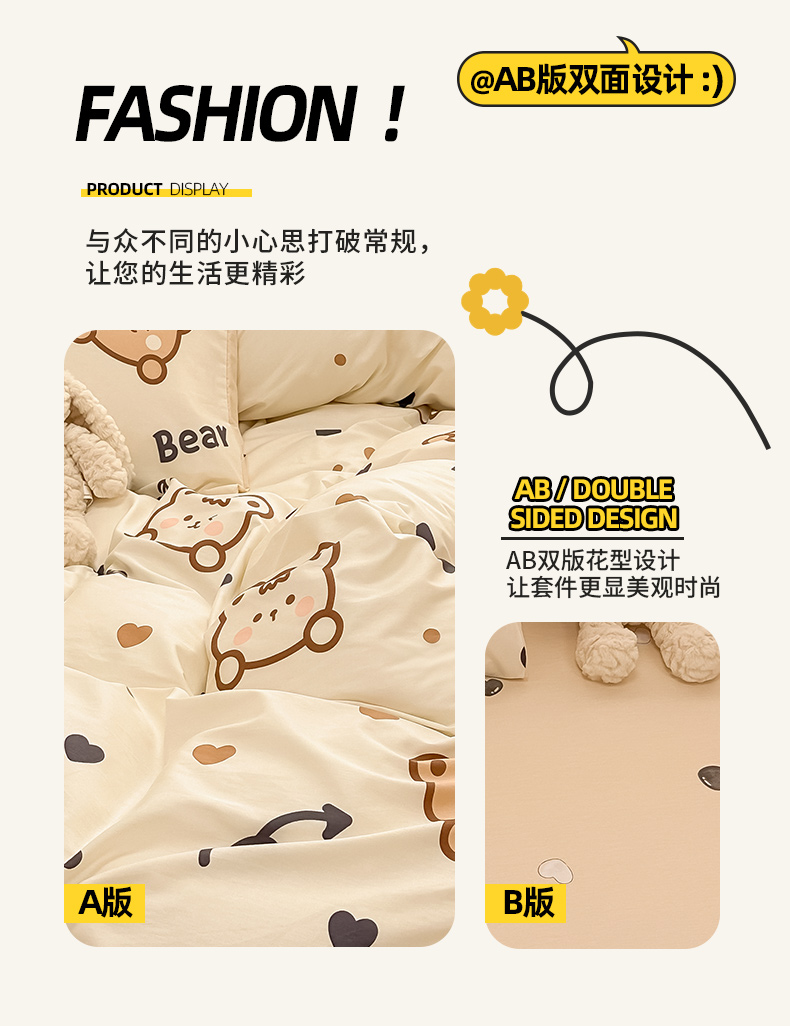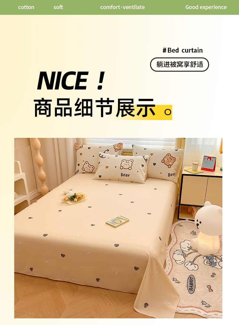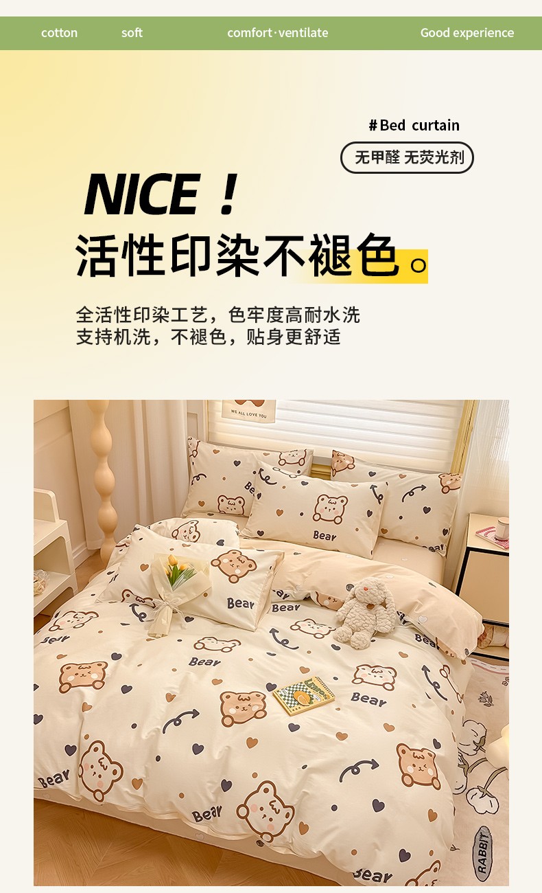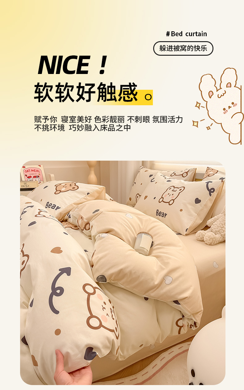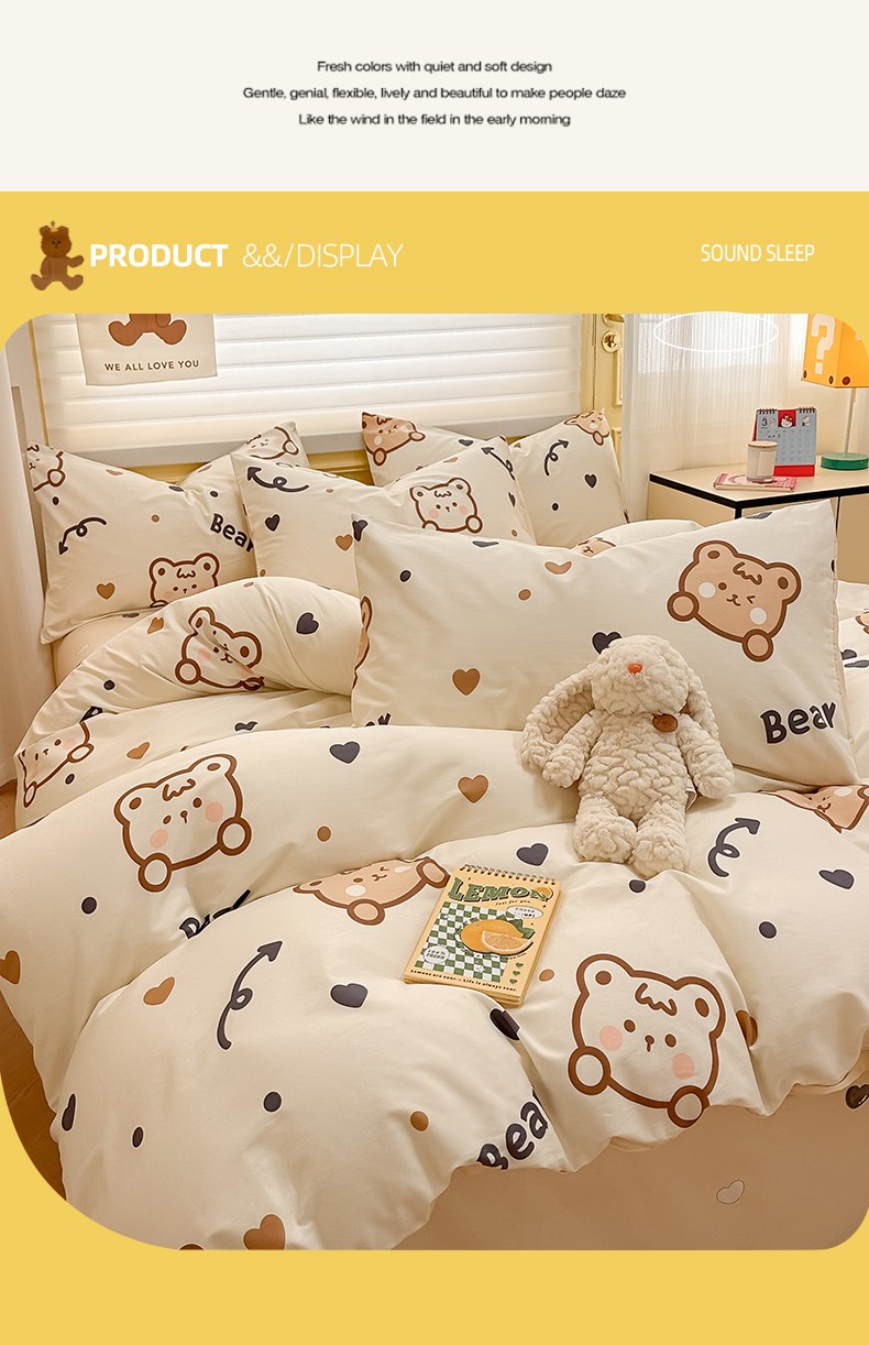 当前位置: 91家纺网 > 商品网购 > 床品套件 > 四件套 > 全棉普通四件套 > 晨希 2024春夏新款全棉13372印花四件套—卡通系列 点点熊