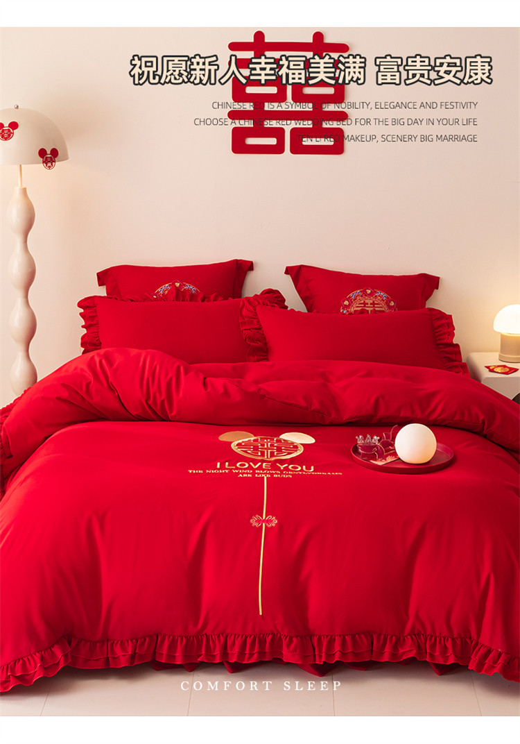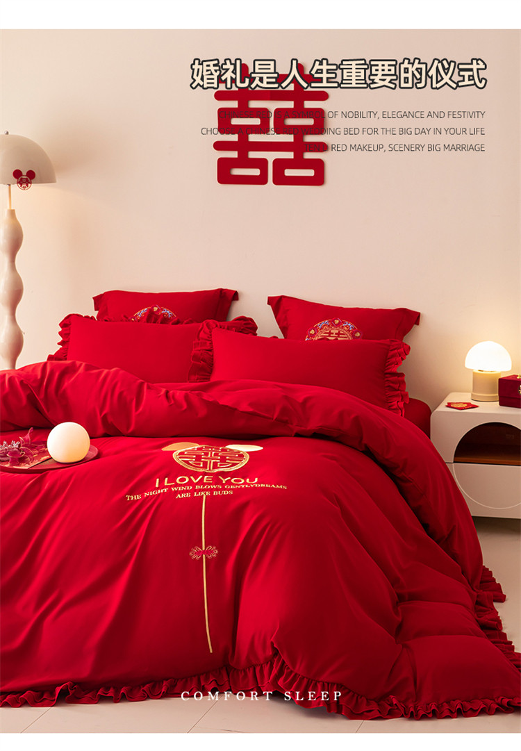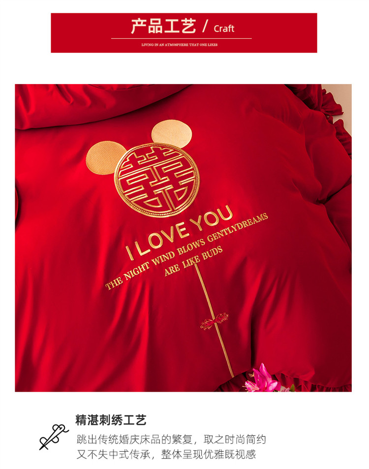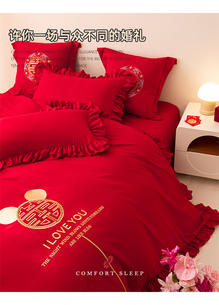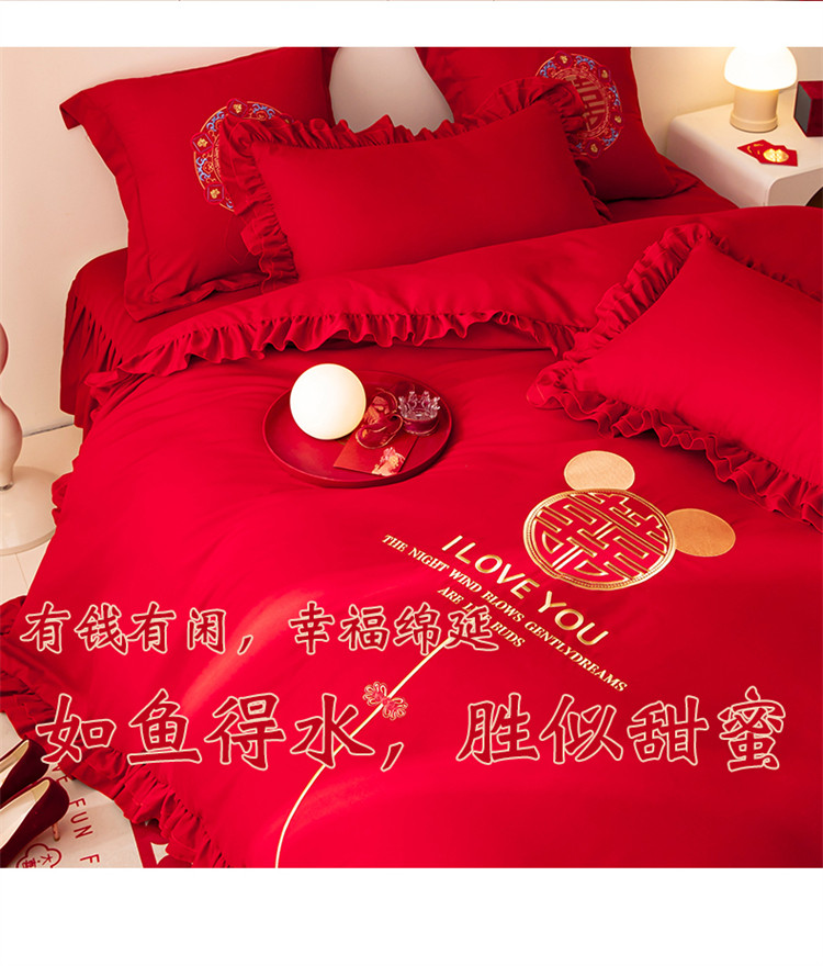 当前位置: 91家纺网 > 商品网购 > 床品套件 > 四件套 > 普通磨毛四件套 > 2025新款磨毛时尚花边款床裙婚庆四件套 花边款-爱的故事