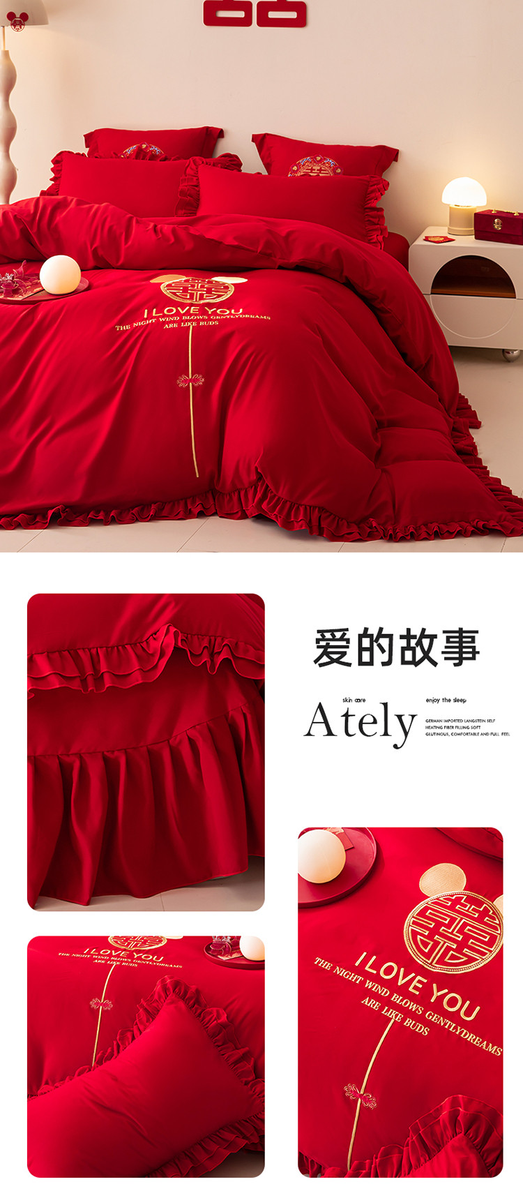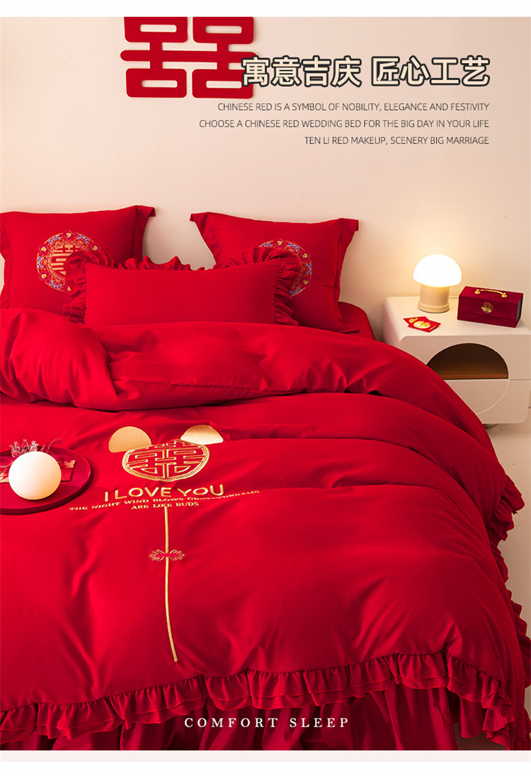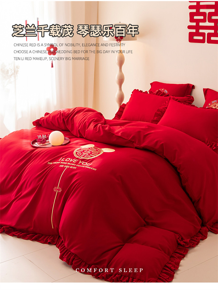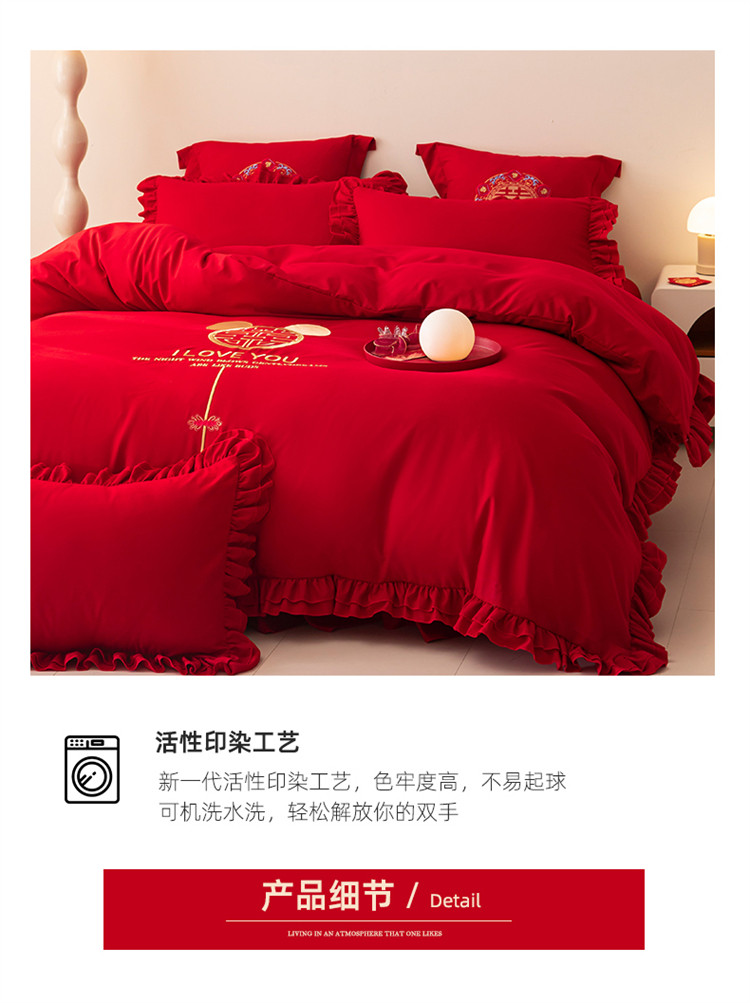 当前位置: 91家纺网 > 商品网购 > 床品套件 > 四件套 > 普通磨毛四件套 > 2025新款磨毛时尚花边款床裙婚庆四件套 花边款-爱的故事
