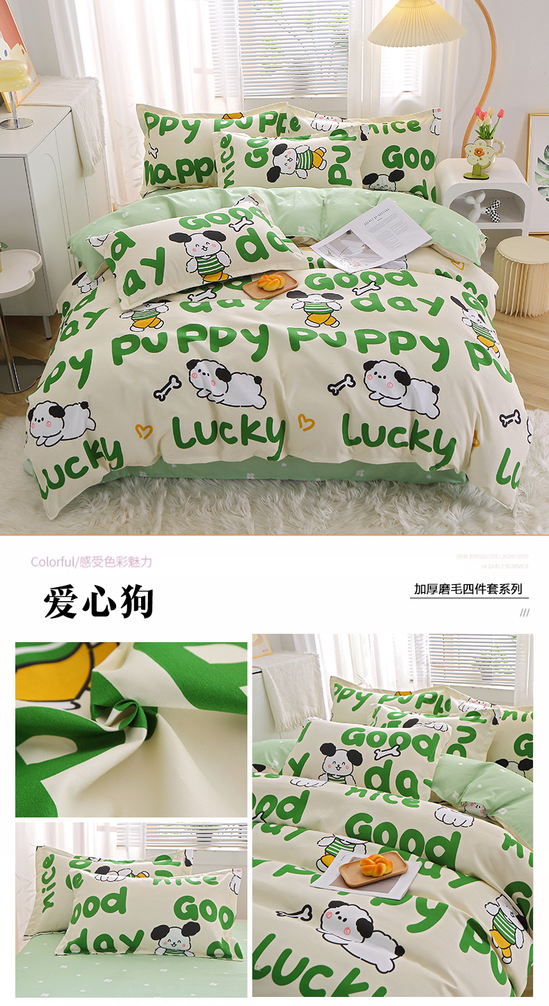 商品名称:北部居 2024新款加厚化纤四件套 爱心狗