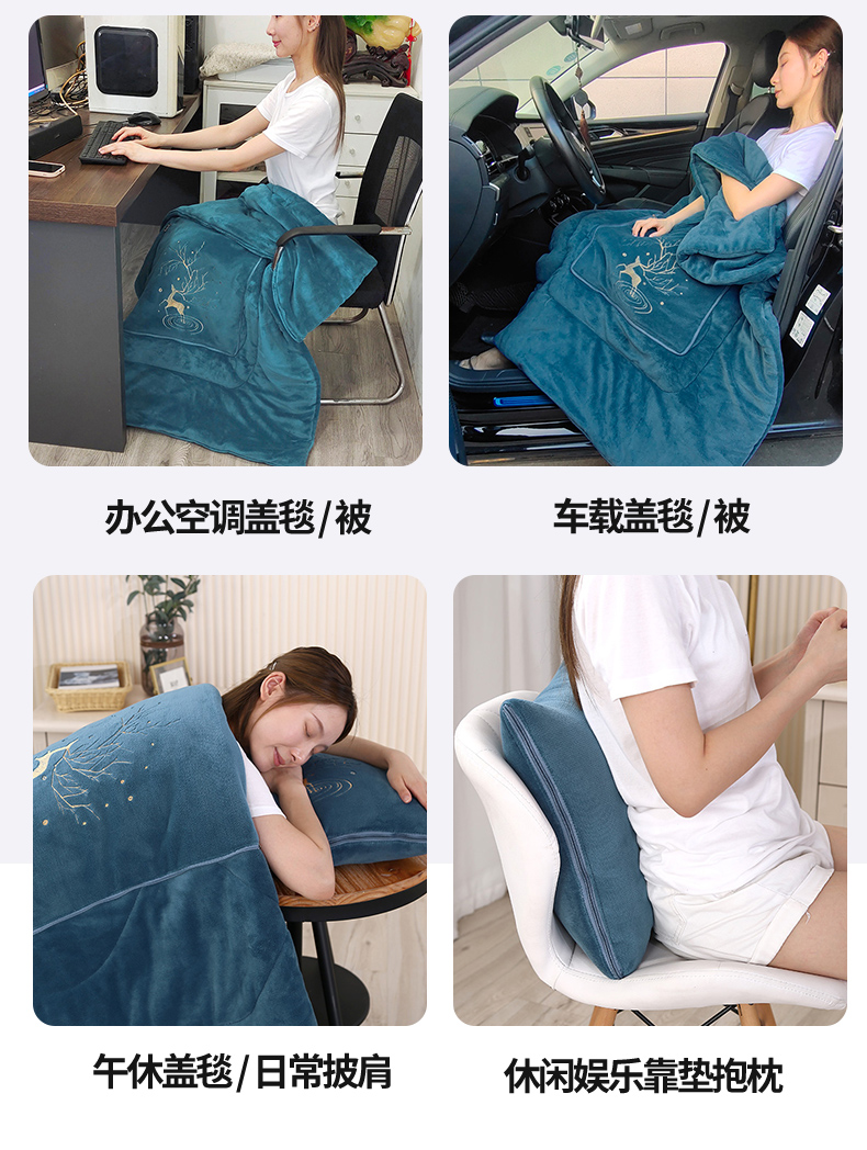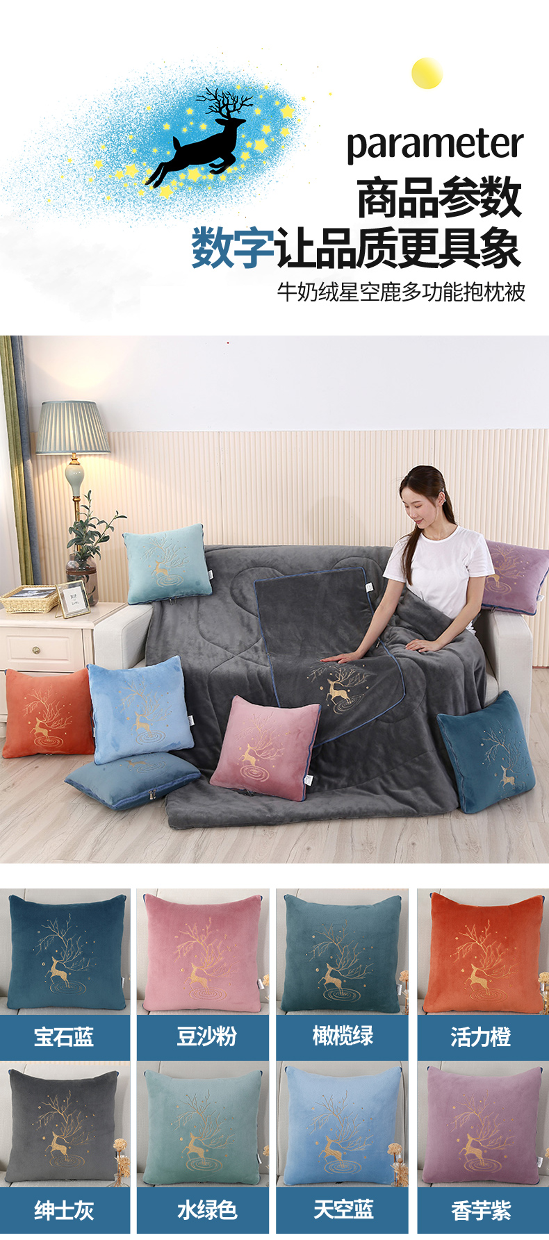 (总)2025款牛奶绒多功能抱枕被-玫瑰绒语,宝石蓝,橄榄绿,柠檬黄,绅士灰,天空蓝,香芋紫