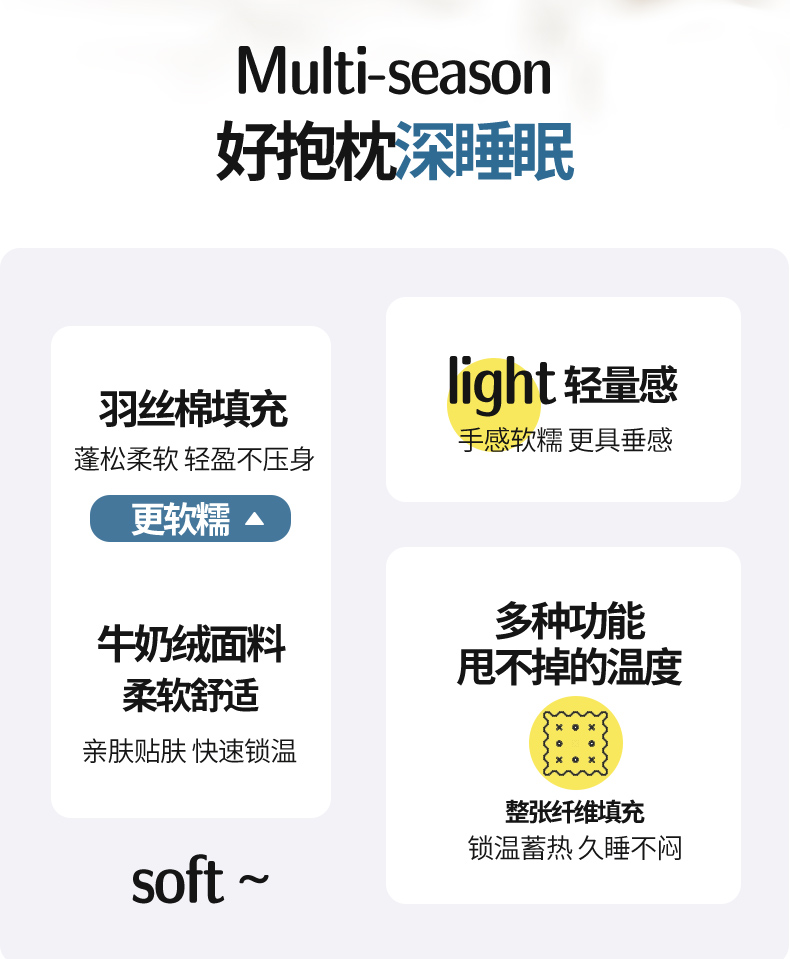 吉利家居 2024新款A类全棉多功能口袋抱枕被 梦格,梦格