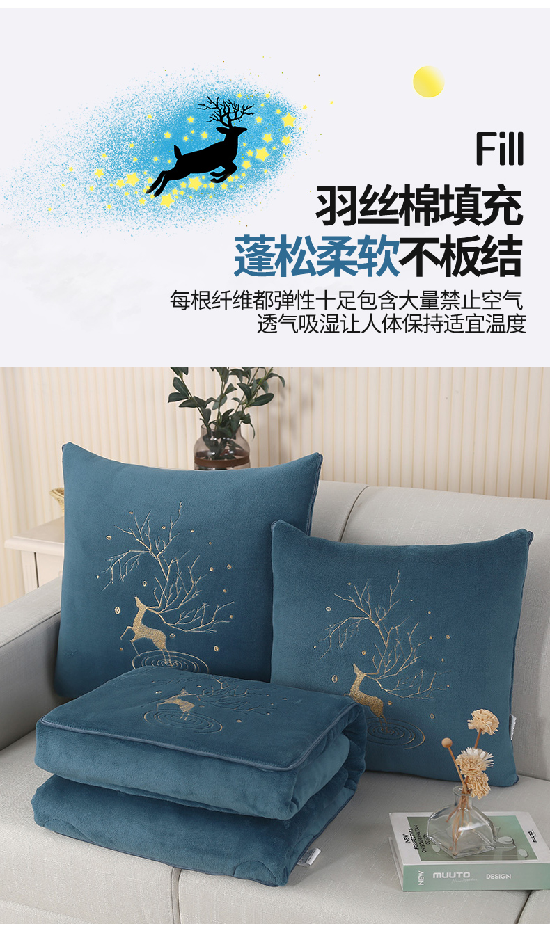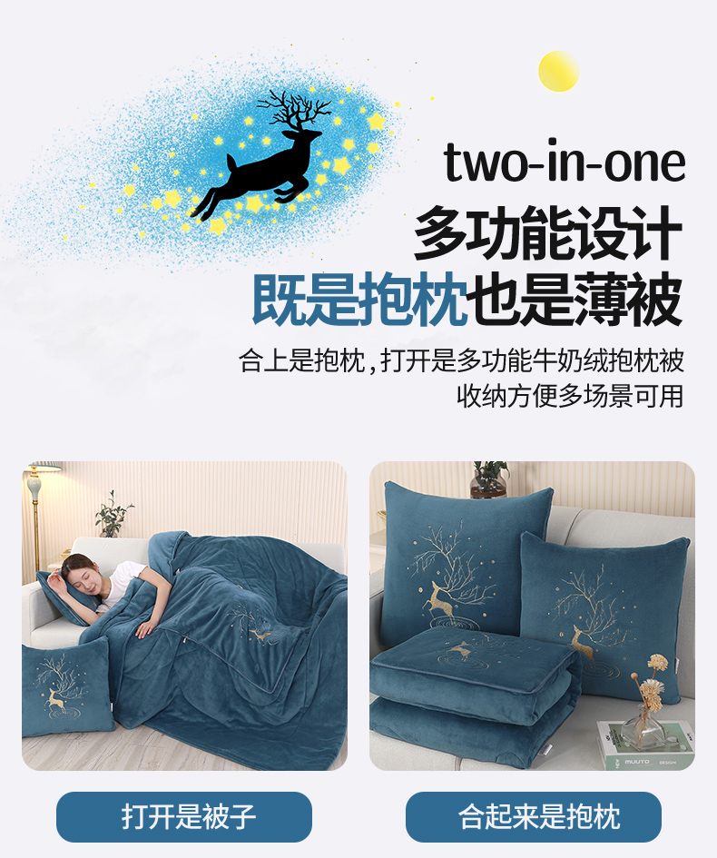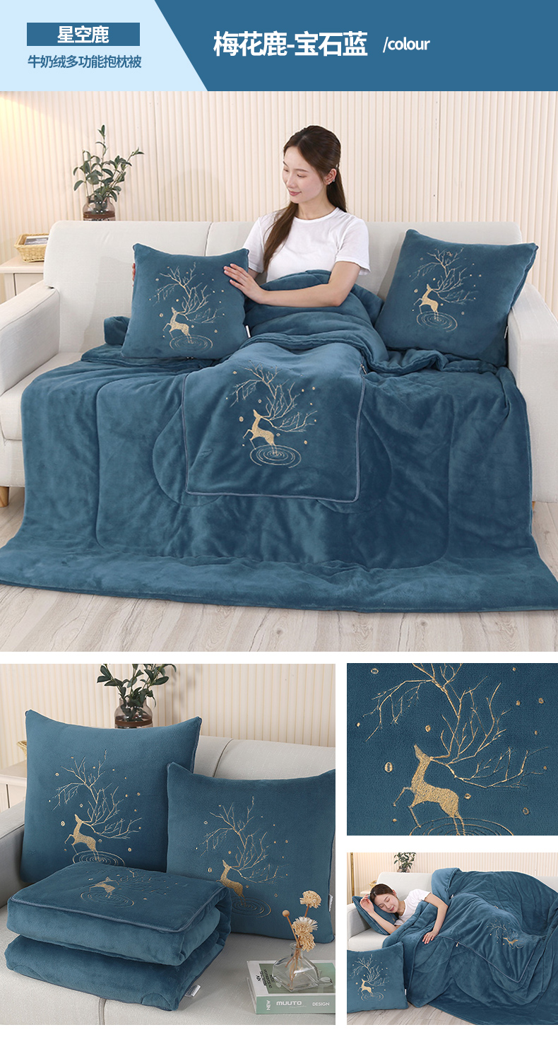 商品名称:吉利家居 2024新款牛奶绒星空鹿多功能抱枕 梅花鹿-宝石蓝