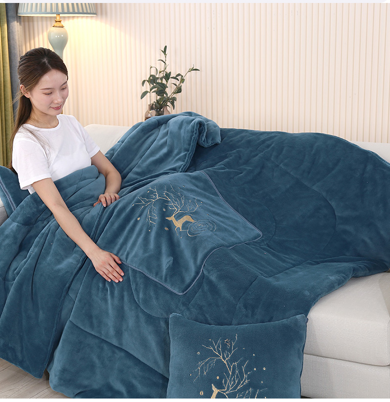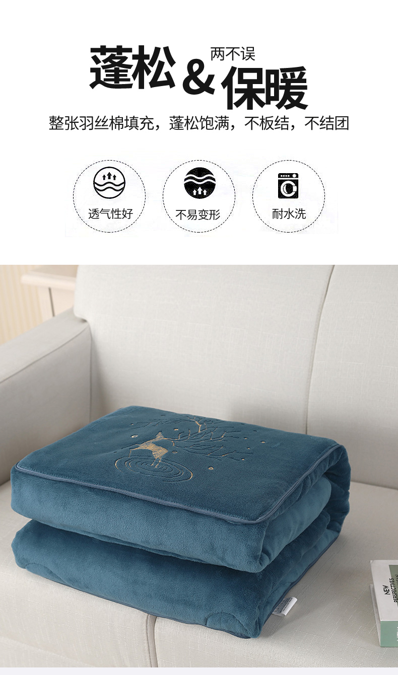 (总)吉利家居 2024新款全棉绣花抱枕被(四季款),宝石蓝,高级灰,红豆沙,湖绿色,灰绿,孔雀蓝,暖炉橙,雾霾灰