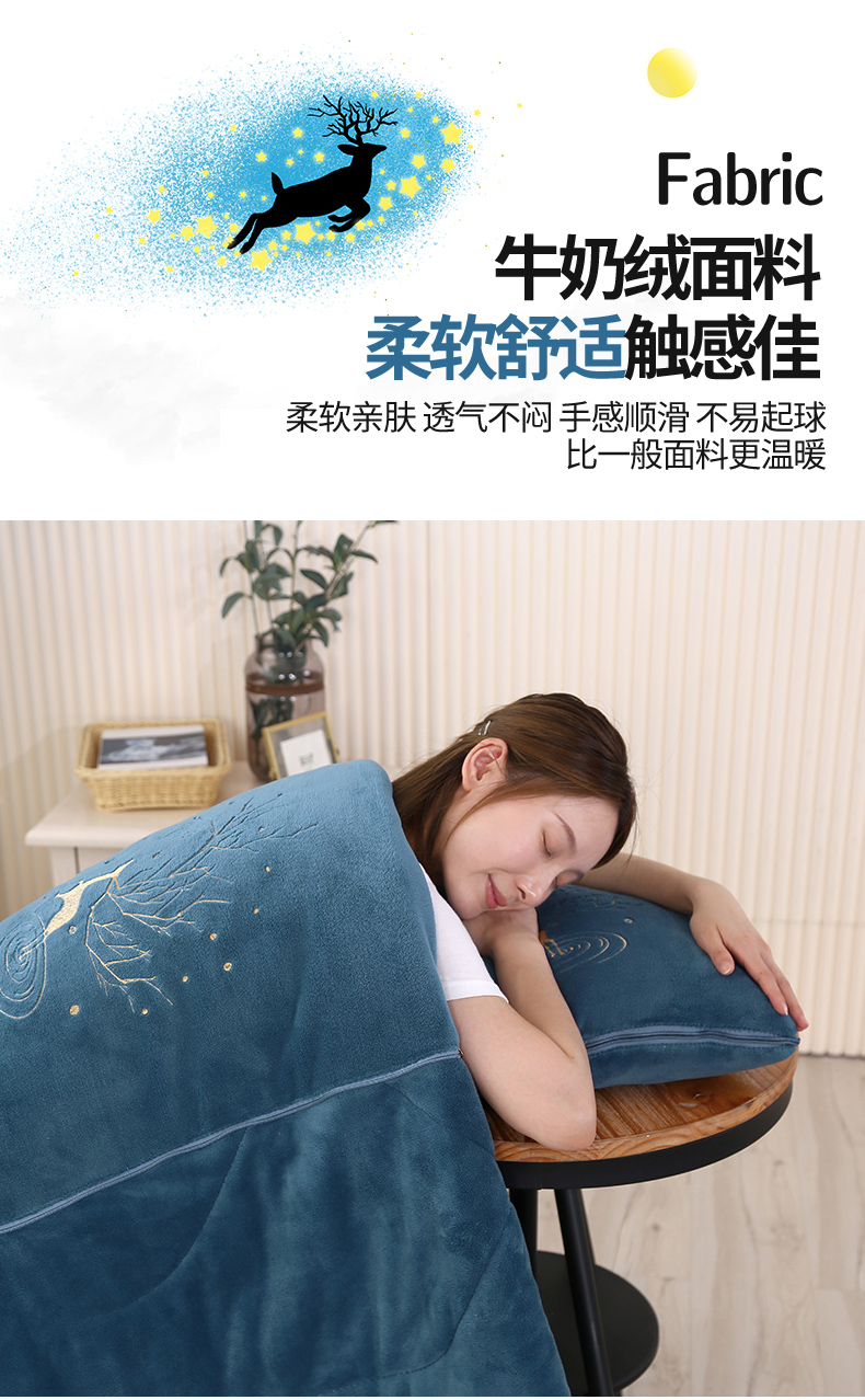吉利家居 2024新款牛奶绒星空鹿多功能抱枕 梅花鹿-宝石蓝