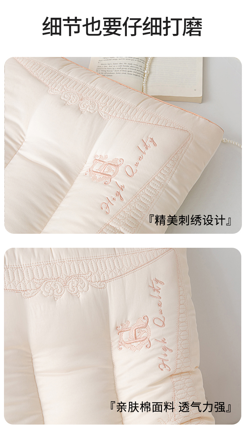 (总)大熊枕芯 2025新款棉麻刺绣款荞麦枕枕头枕芯,棉麻刺绣款荞麦枕