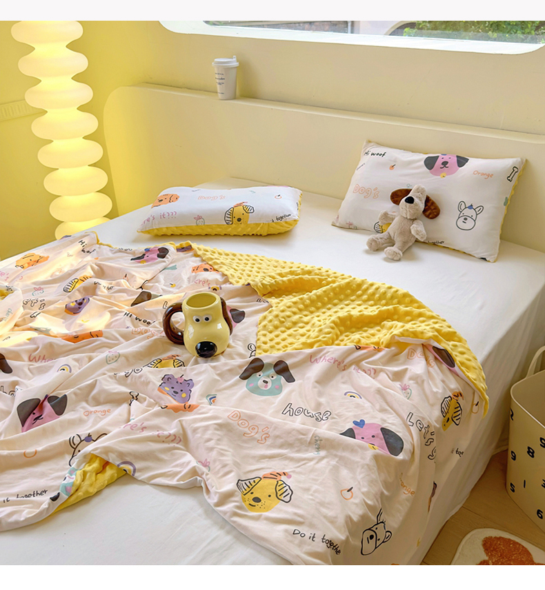 希诺 2024春夏豆豆绒多功能被套盖毯针织棉幼儿园豆豆被可拆洗 萌宠乐园