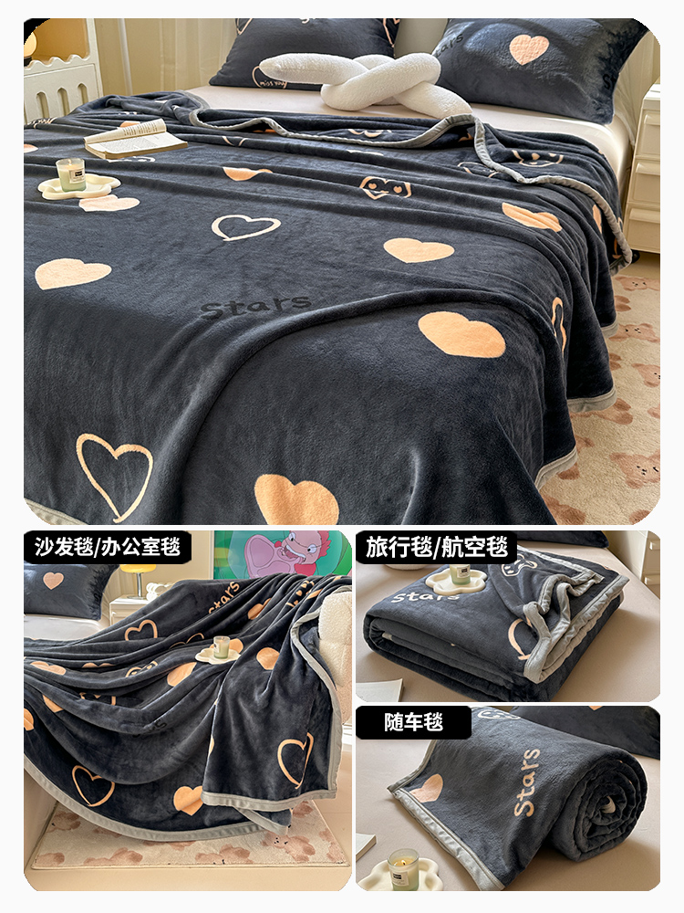 商品名称:宅部落 2024新款牛奶绒印花毛毯毯子300克云貂绒盖毯 爱心