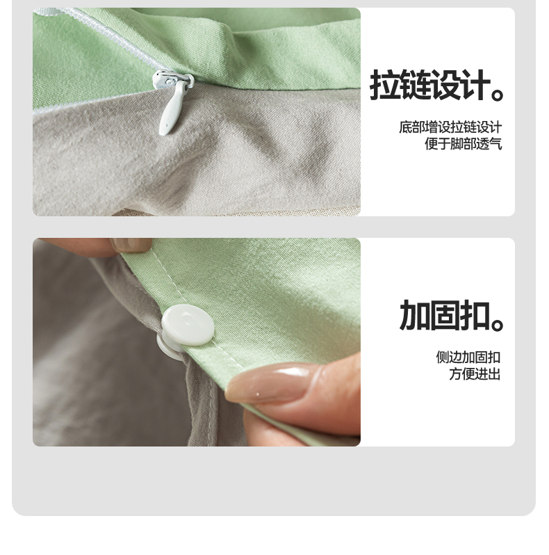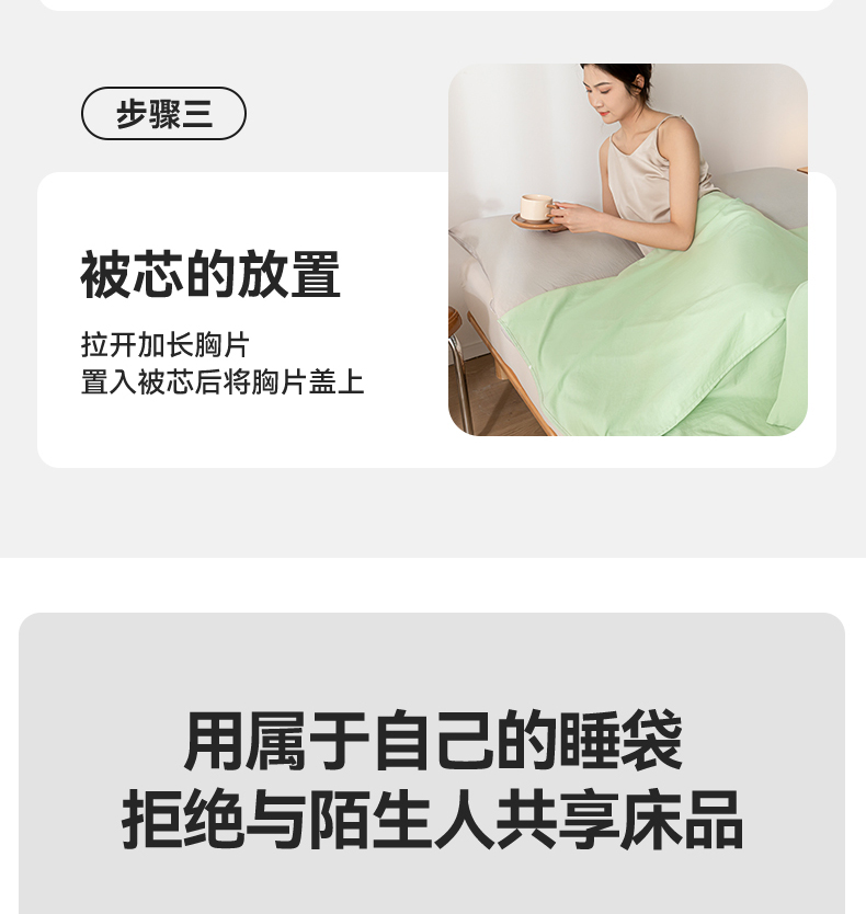 商品名称:古吉梦 2024新款水洗棉隔脏睡袋 灰绿+山灰