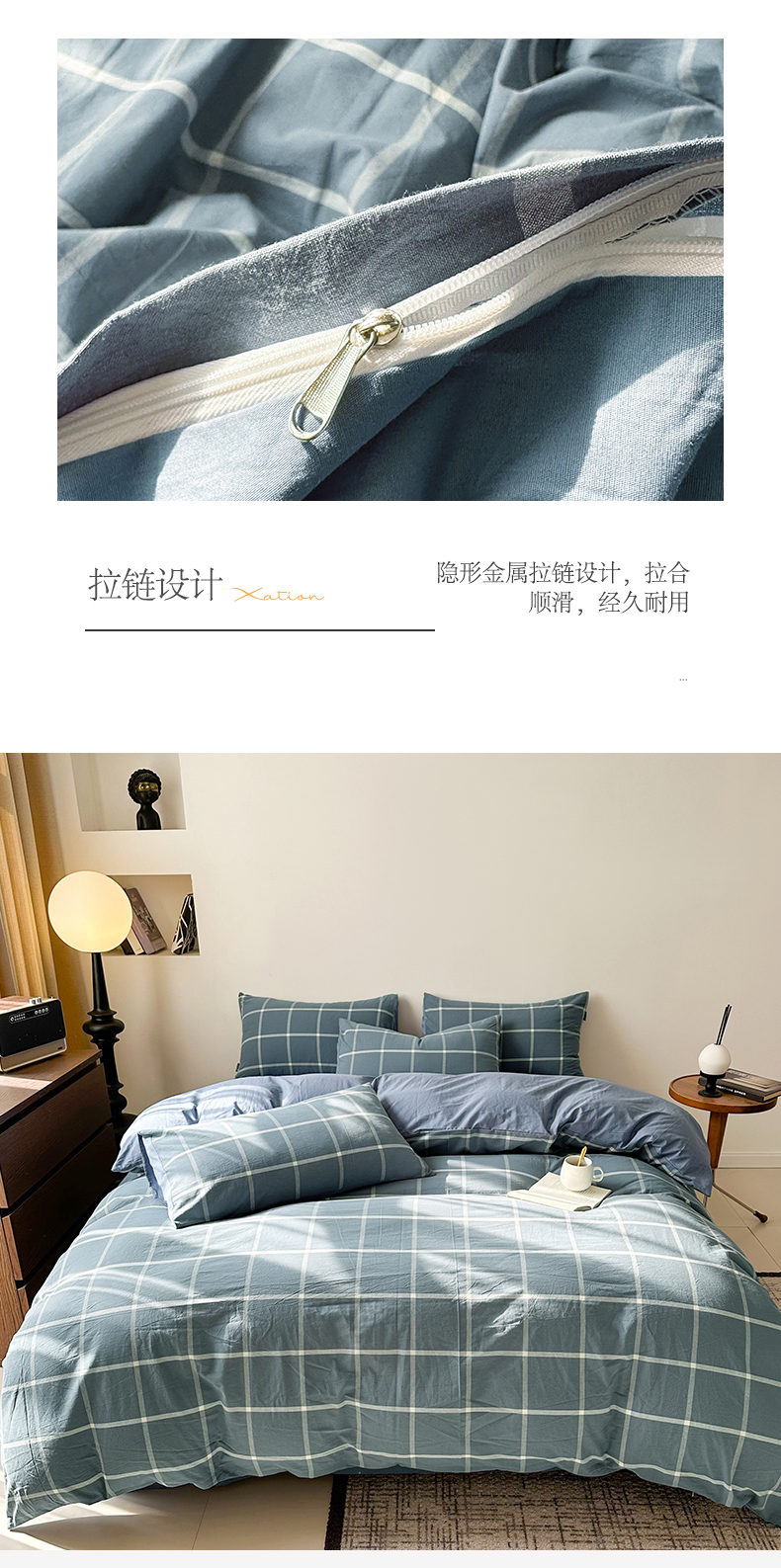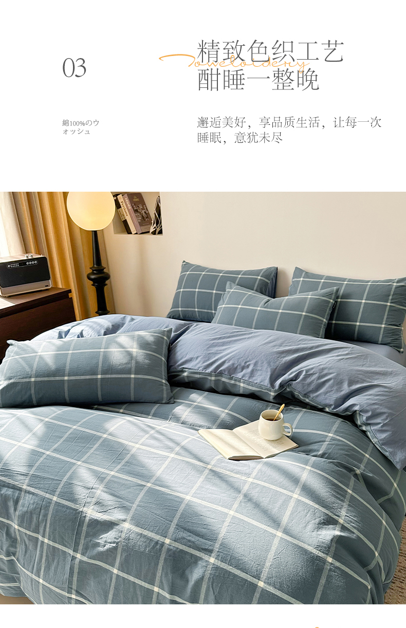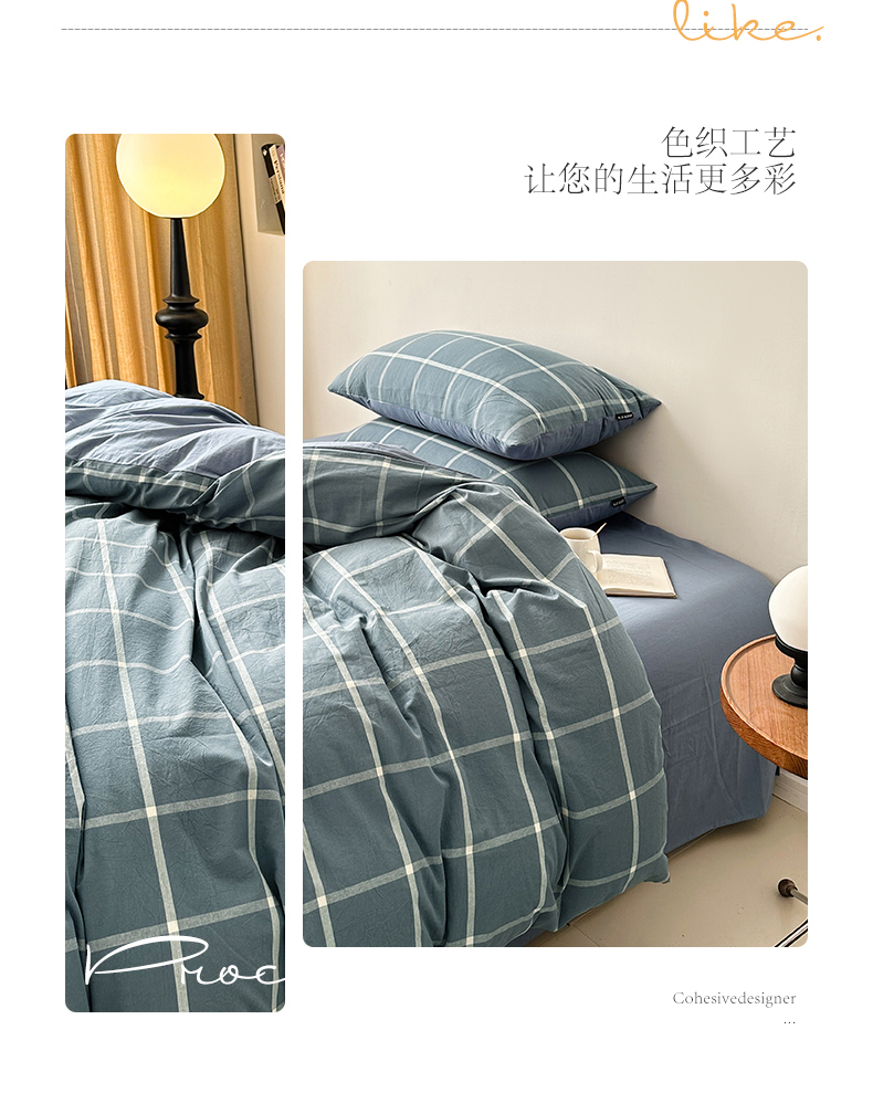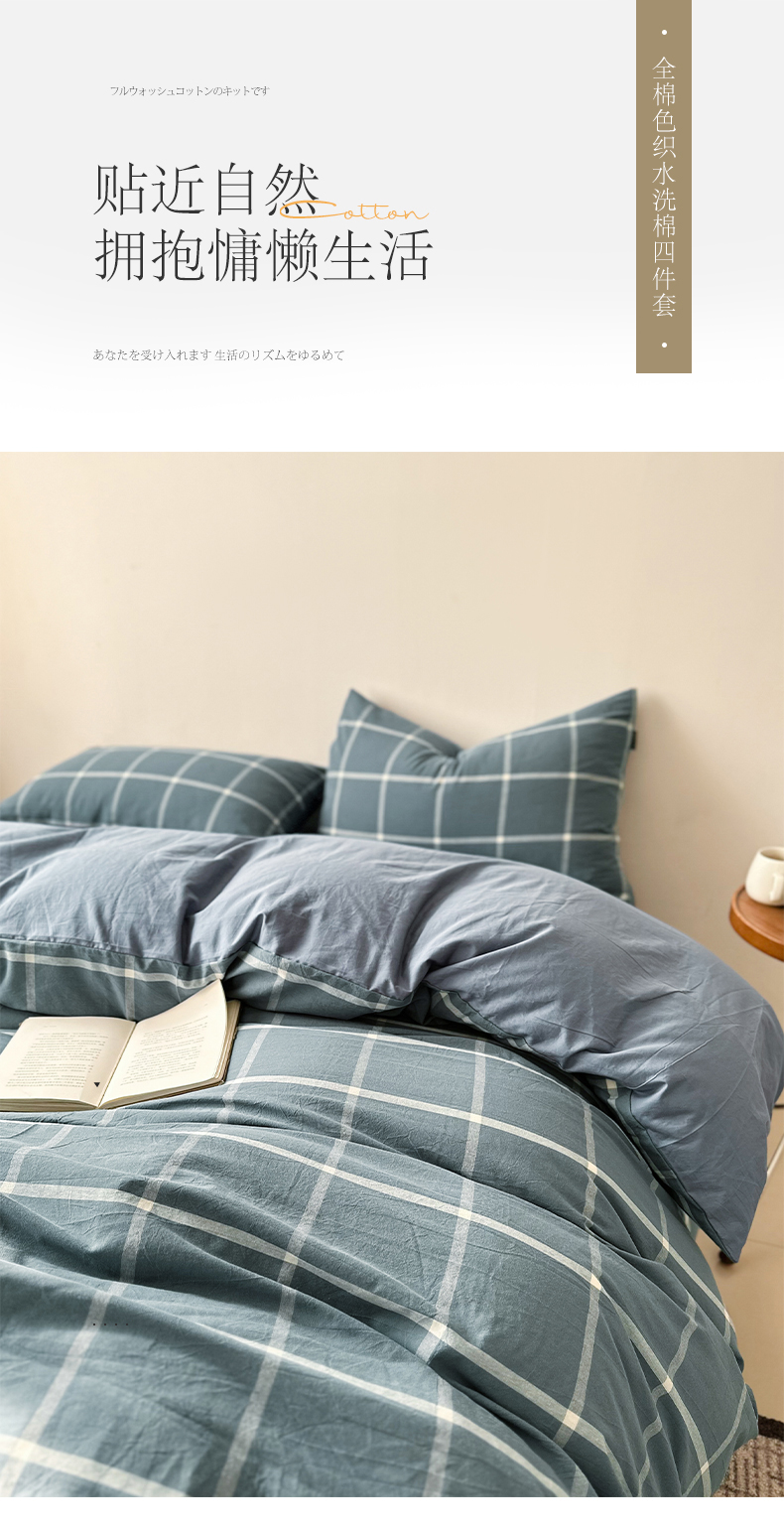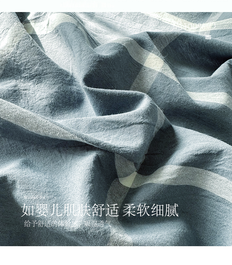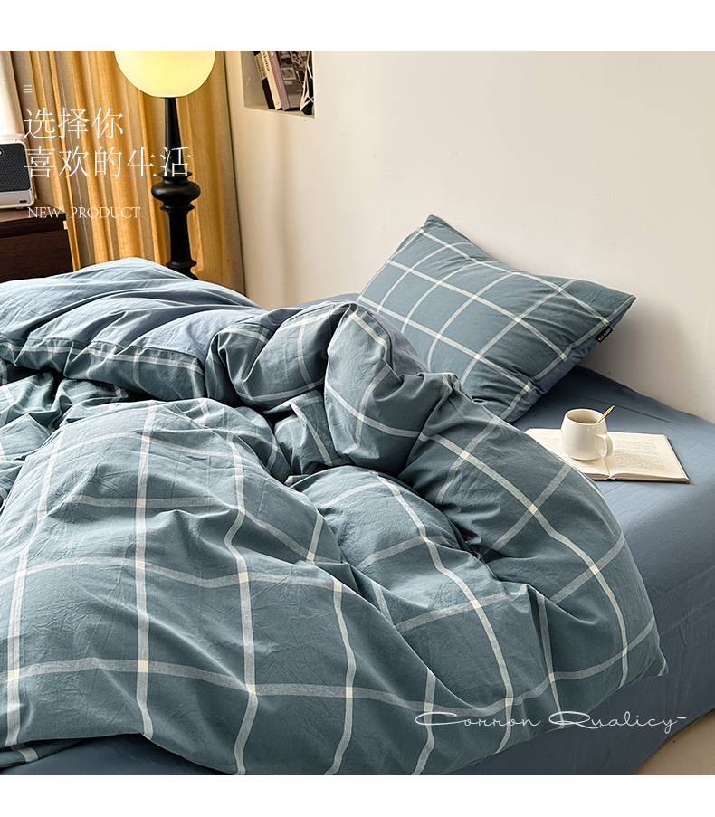 商品名称:小懒猪 2024新款色织水洗棉格子款四件套 糖果蓝大格