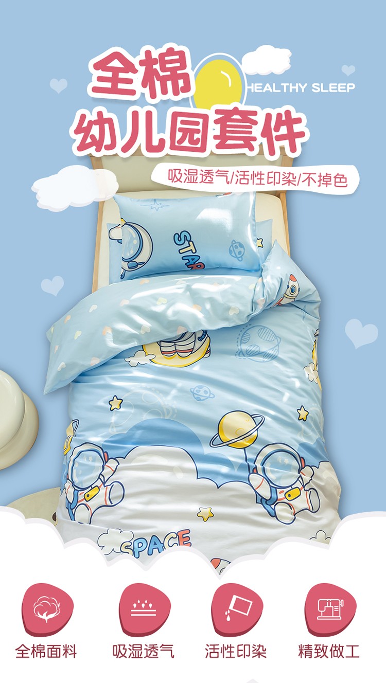 当前位置: 91家纺网 > 商品网购 > 婴童用品 > 婴童床品套件 > 全棉幼儿园被子三件套儿童午睡棉被褥宝宝入园含芯六件套 星际旅行