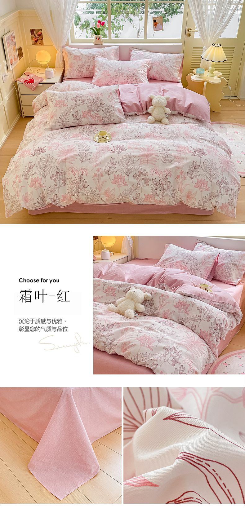 启程2024新款全棉13372印花四件套直播爆款法式复古碎花系列 霜叶-红