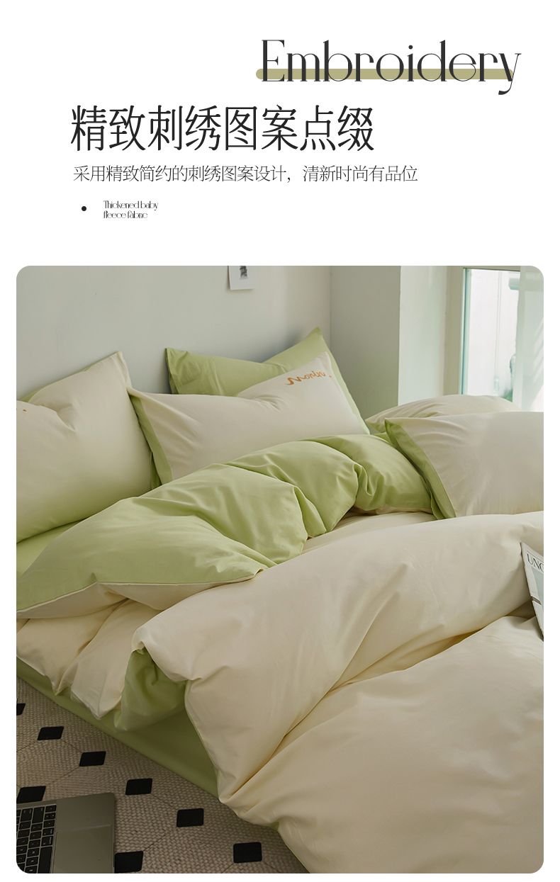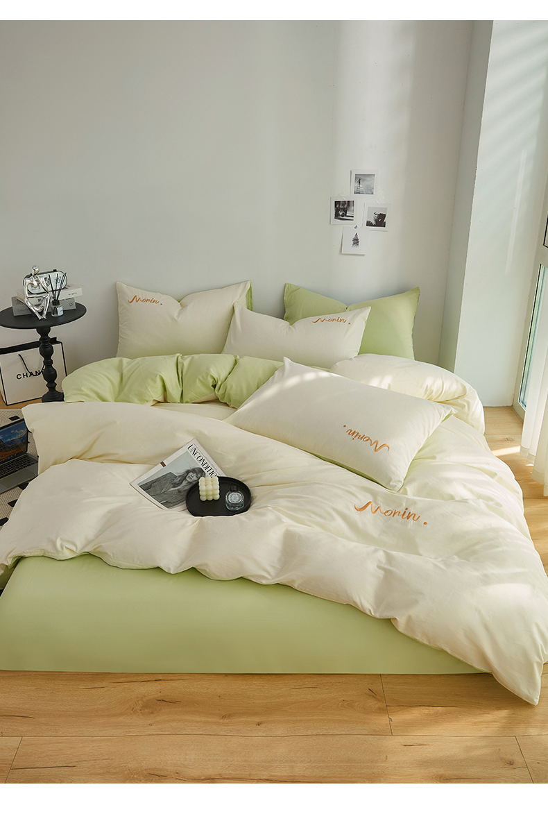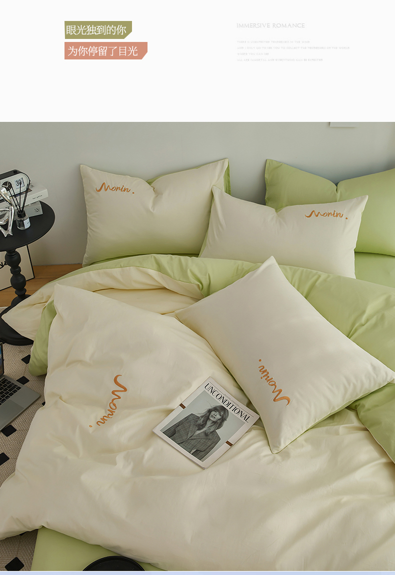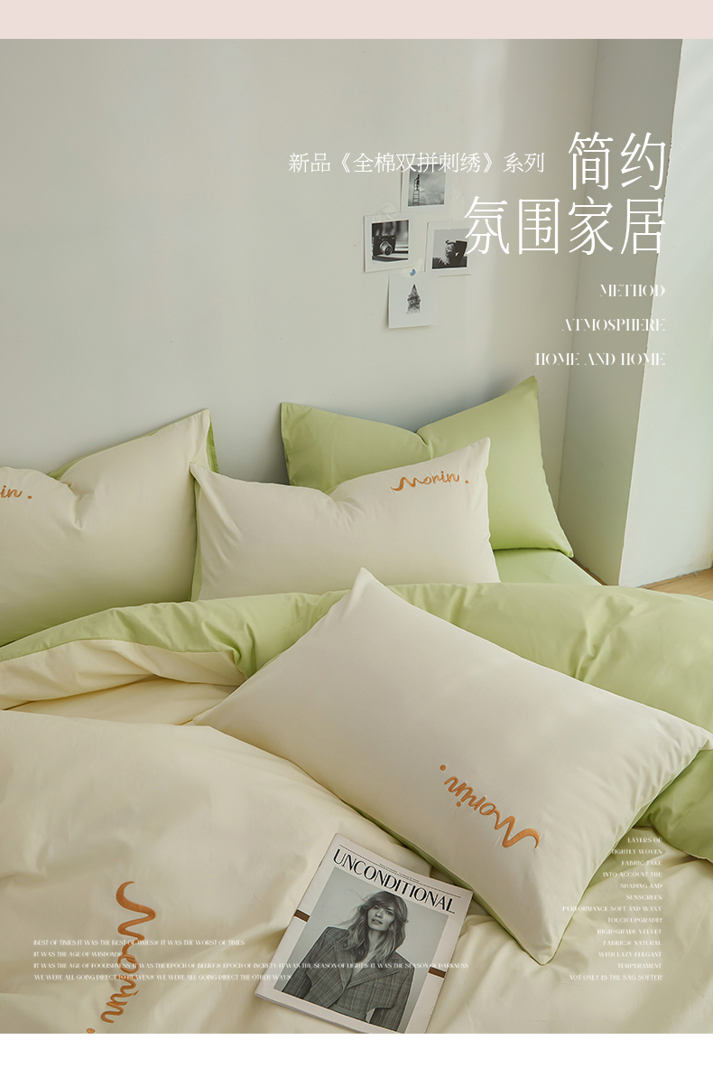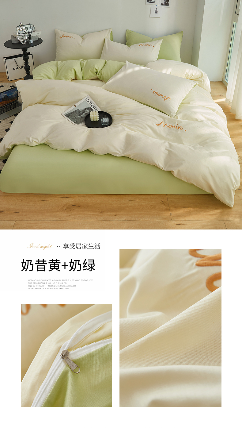 商品名称:多品家纺 2024新款全棉纯色绣花四件套 奶昔黄+奶绿