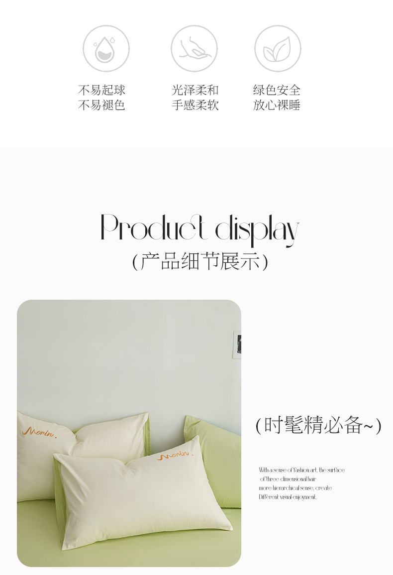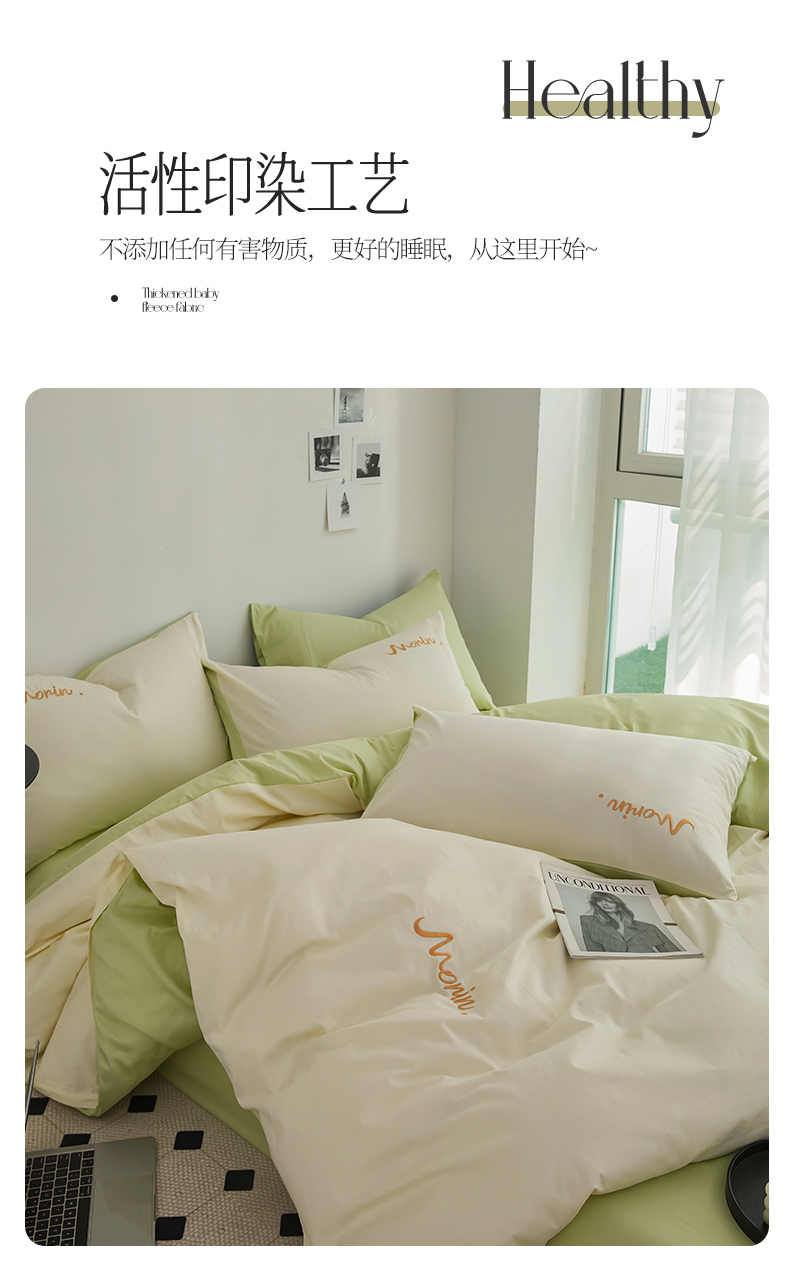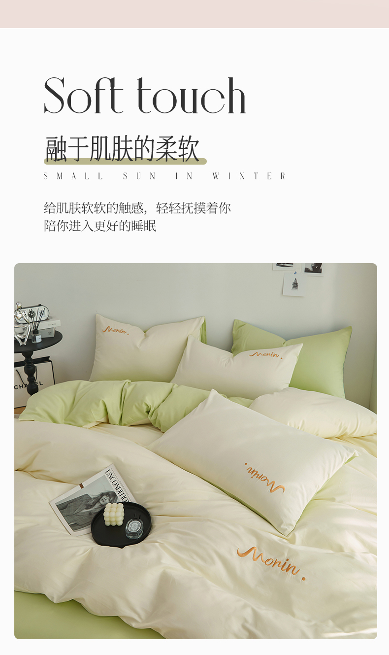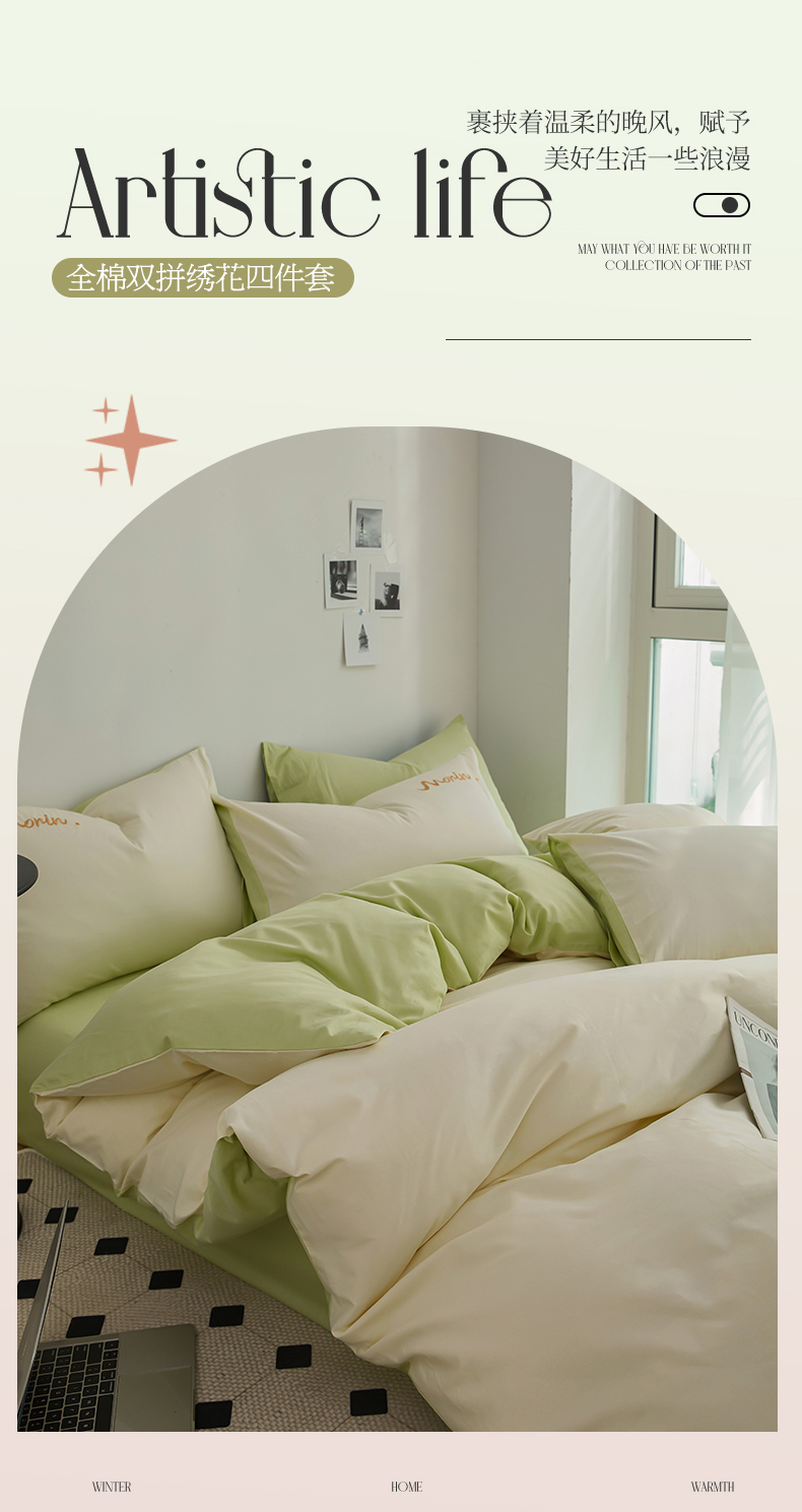 商品名称:多品家纺 2024新款全棉纯色绣花四件套 奶昔黄+奶绿