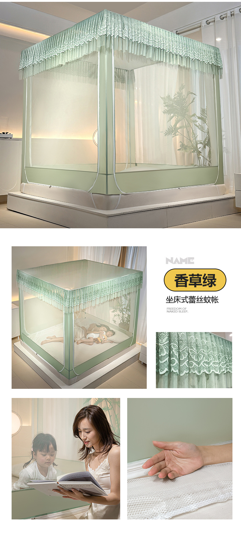 商品名称:(总)青竹苑 2024新款内穿蕾丝花边坐床蚊帐