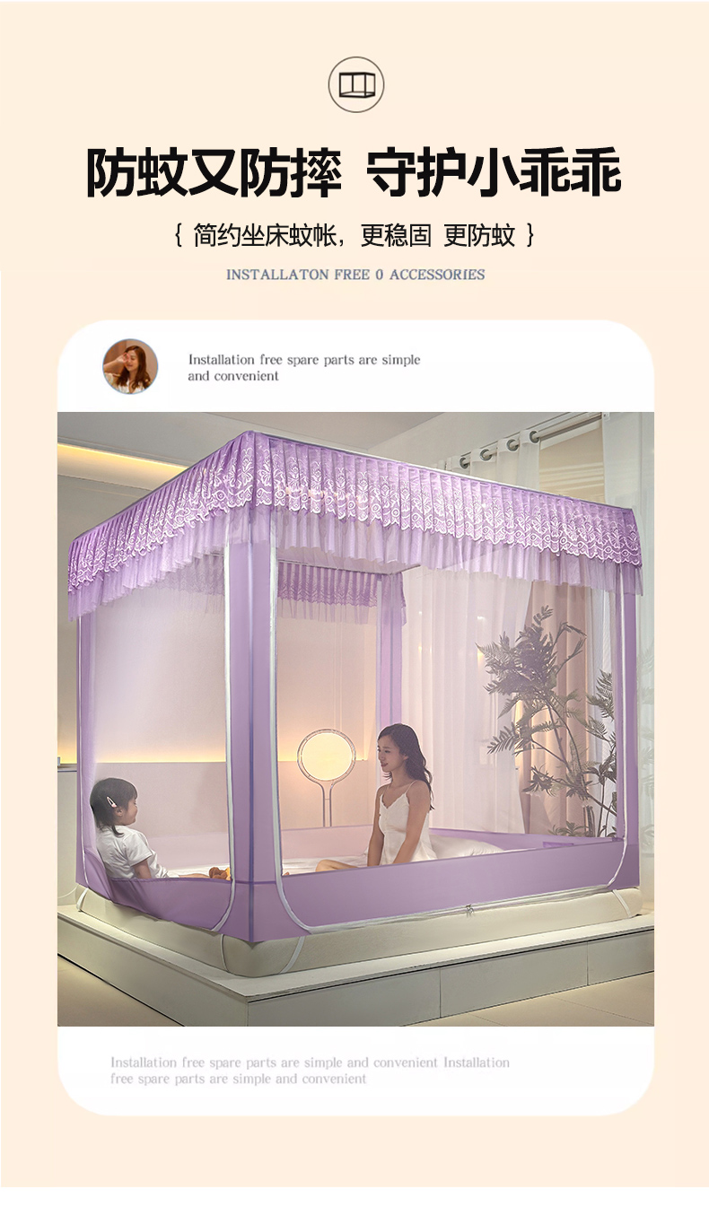 (总)青竹苑 2024新款内穿蕾丝花边坐床蚊帐