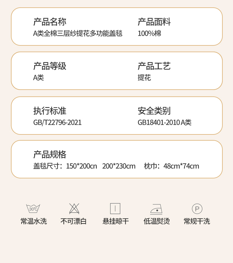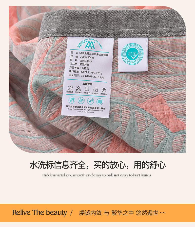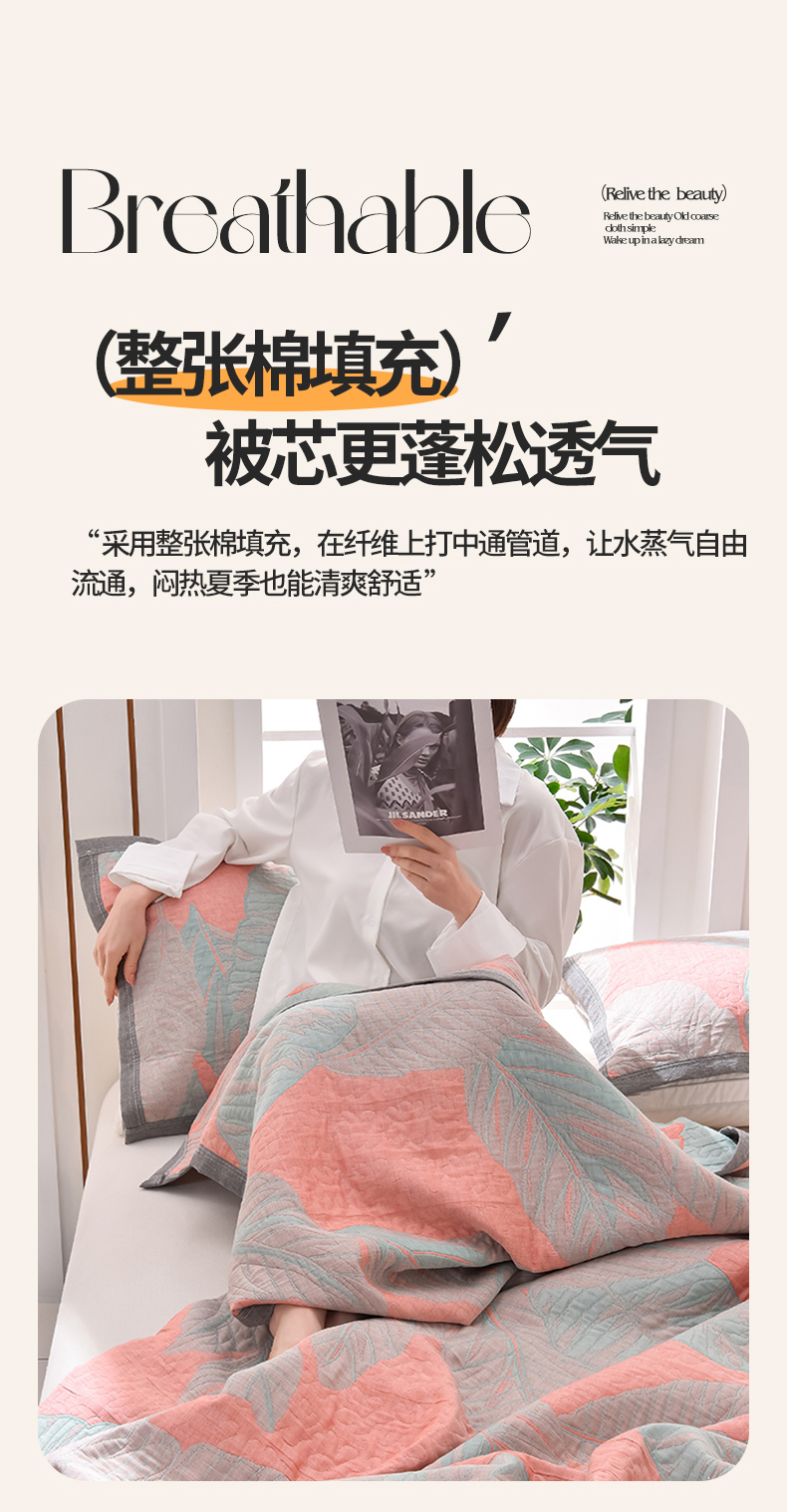 商品名称:米奈 2024新款A类抗菌全棉三层纱提花多功能盖毯(有质检报告) 热浪夏日