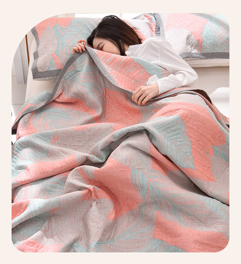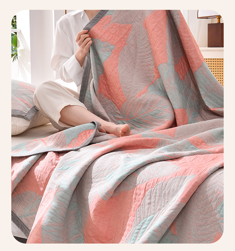 米奈 2024新款A类抗菌全棉三层纱提花多功能盖毯(有质检报告) 热浪夏日