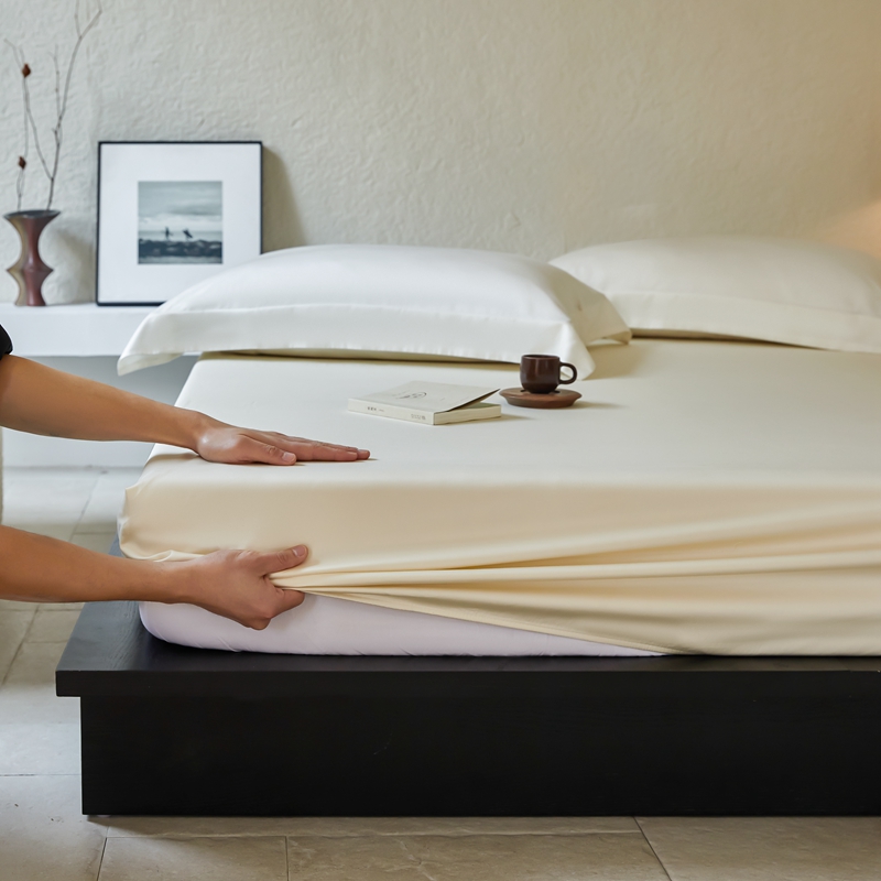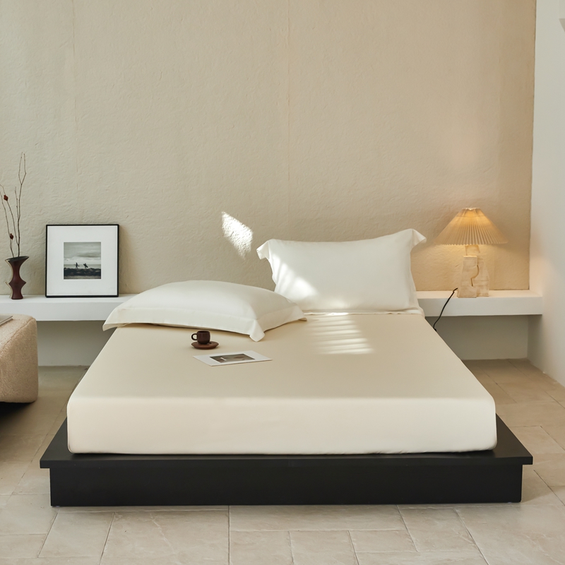 商品名称:鹿班家居 2024新款100S长绒棉纯色单品床笠(场景二) 奶昔白
