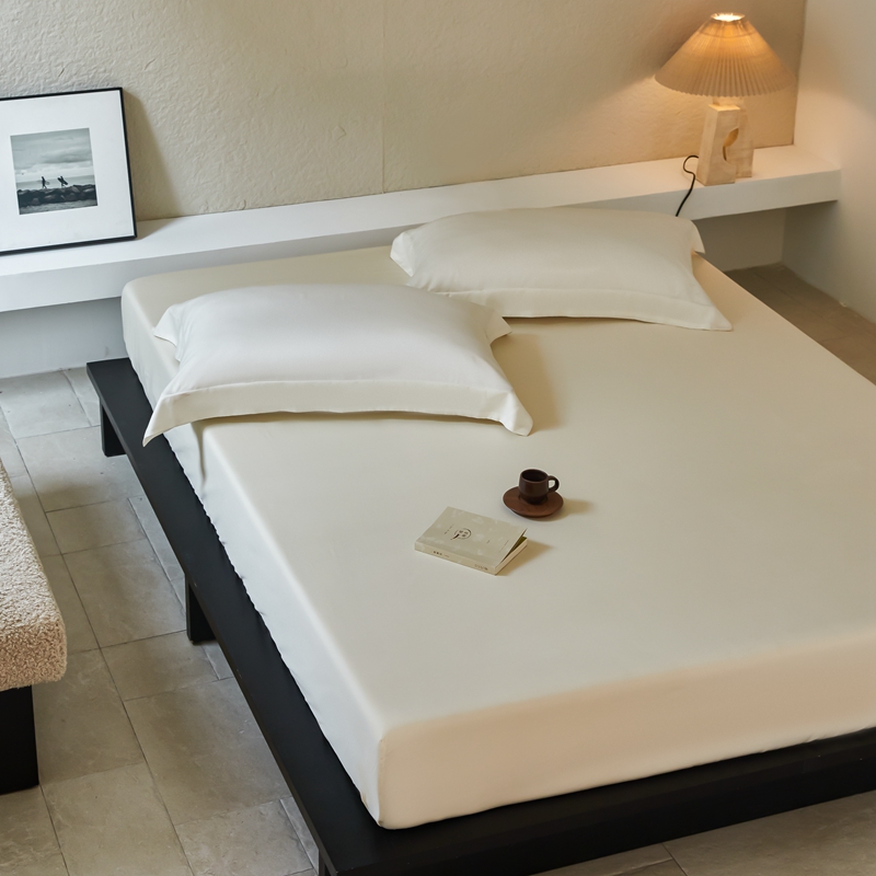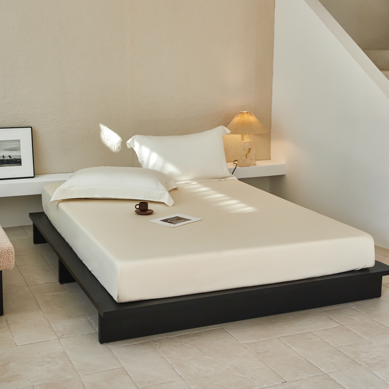 鹿班家居 2024新款100S长绒棉纯色单品床笠(场景二) 奶昔白
