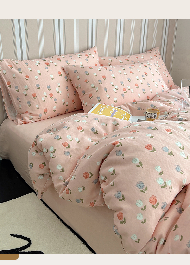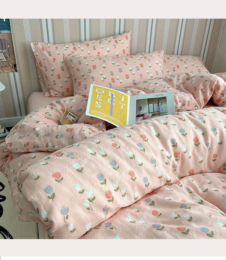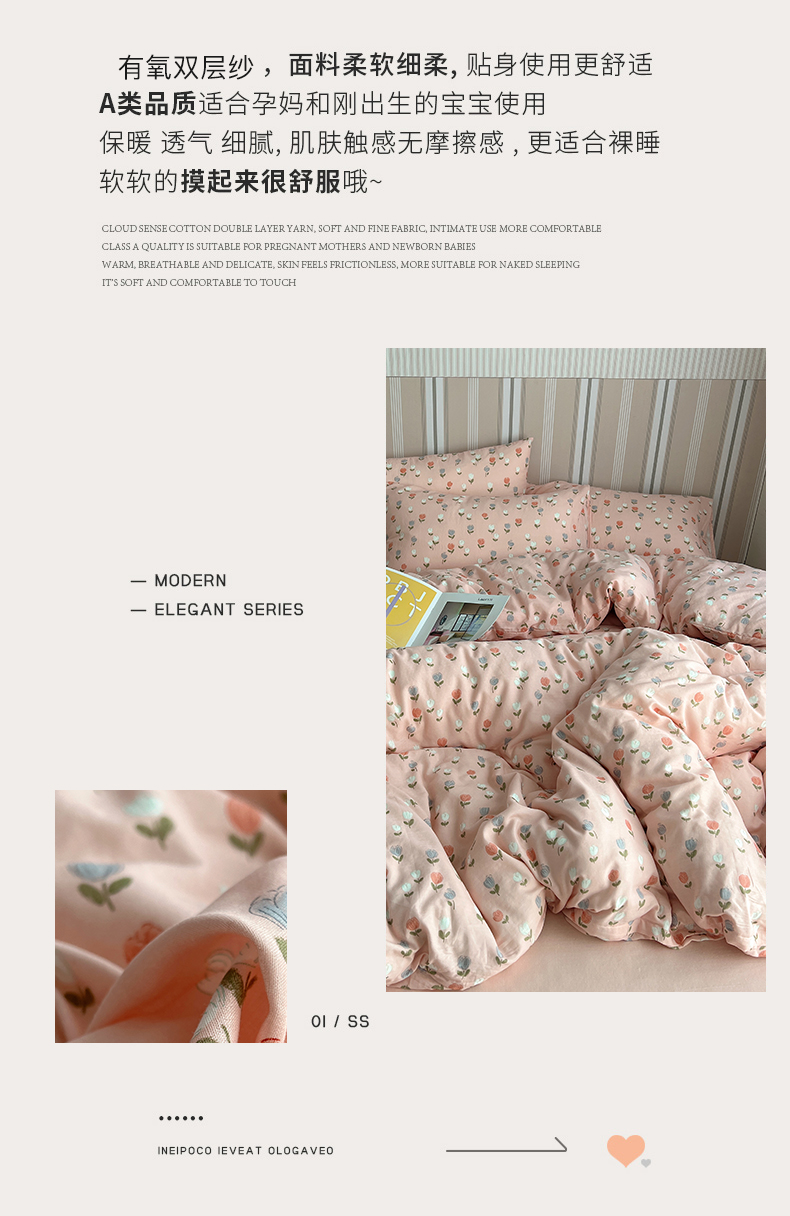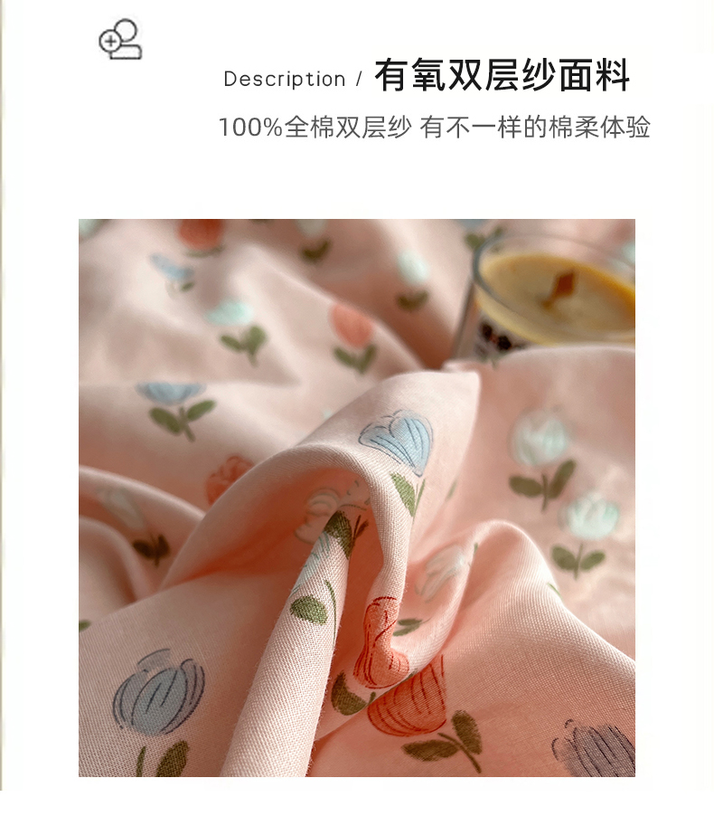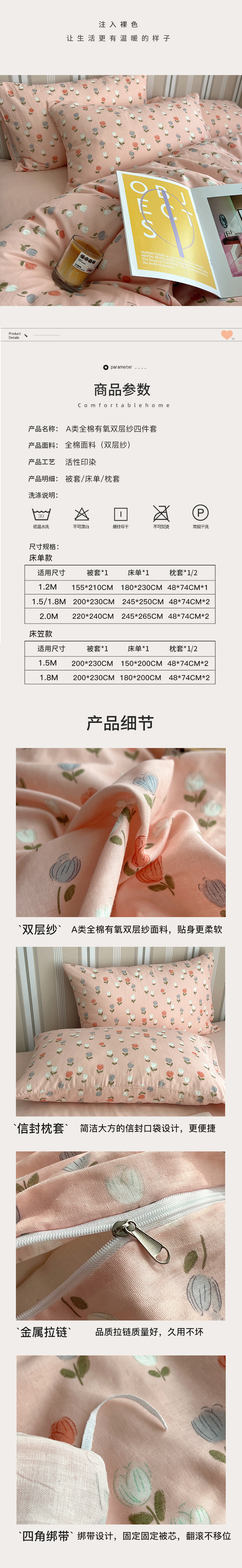 商品名称:卧趣2024新款A类全棉有氧双层纱四件套 仲夏花开