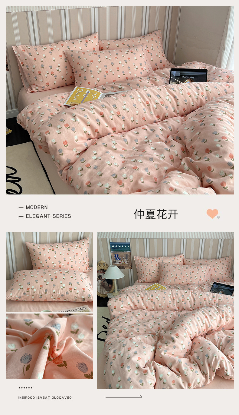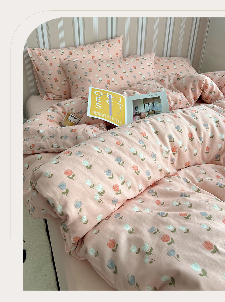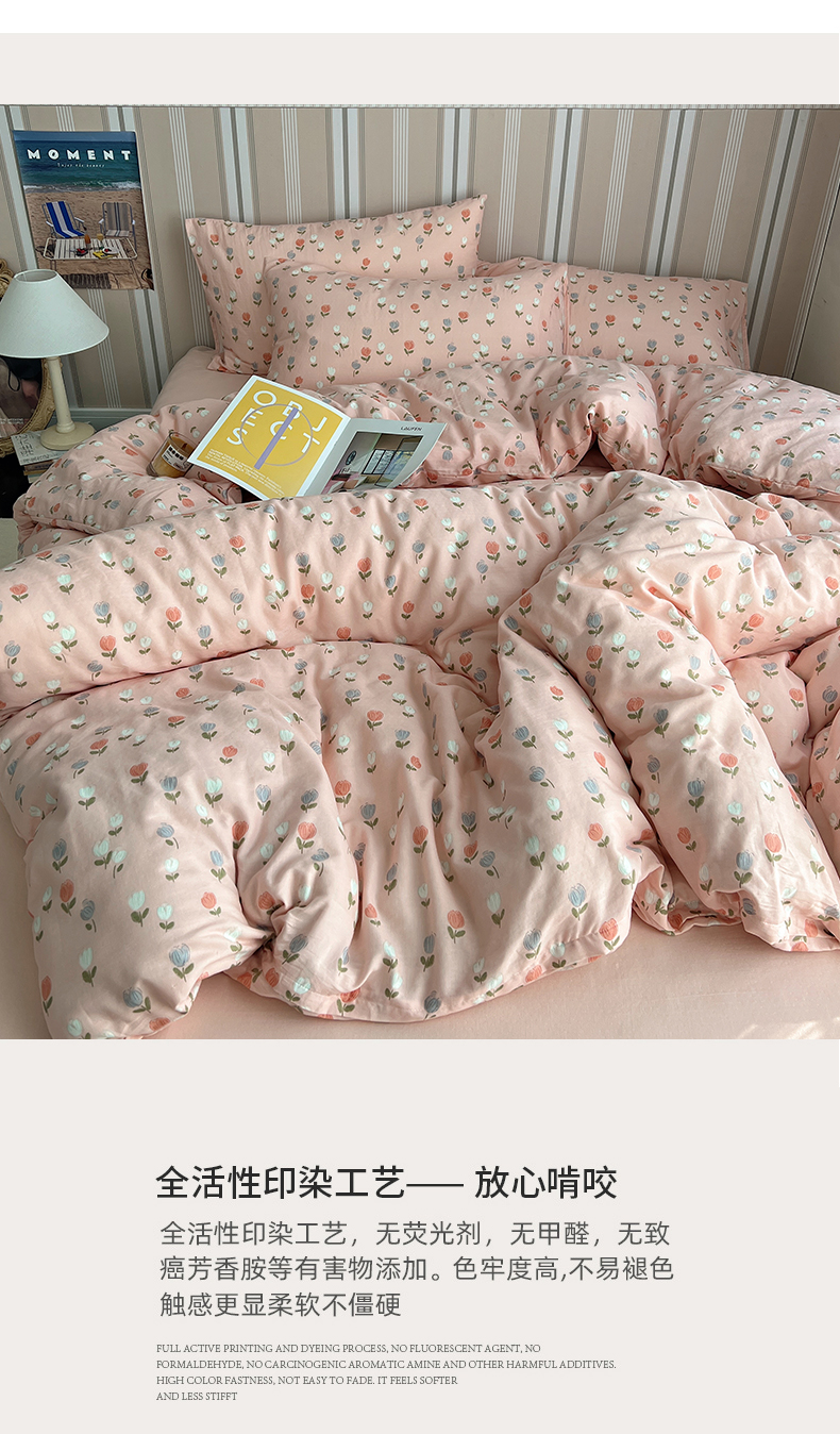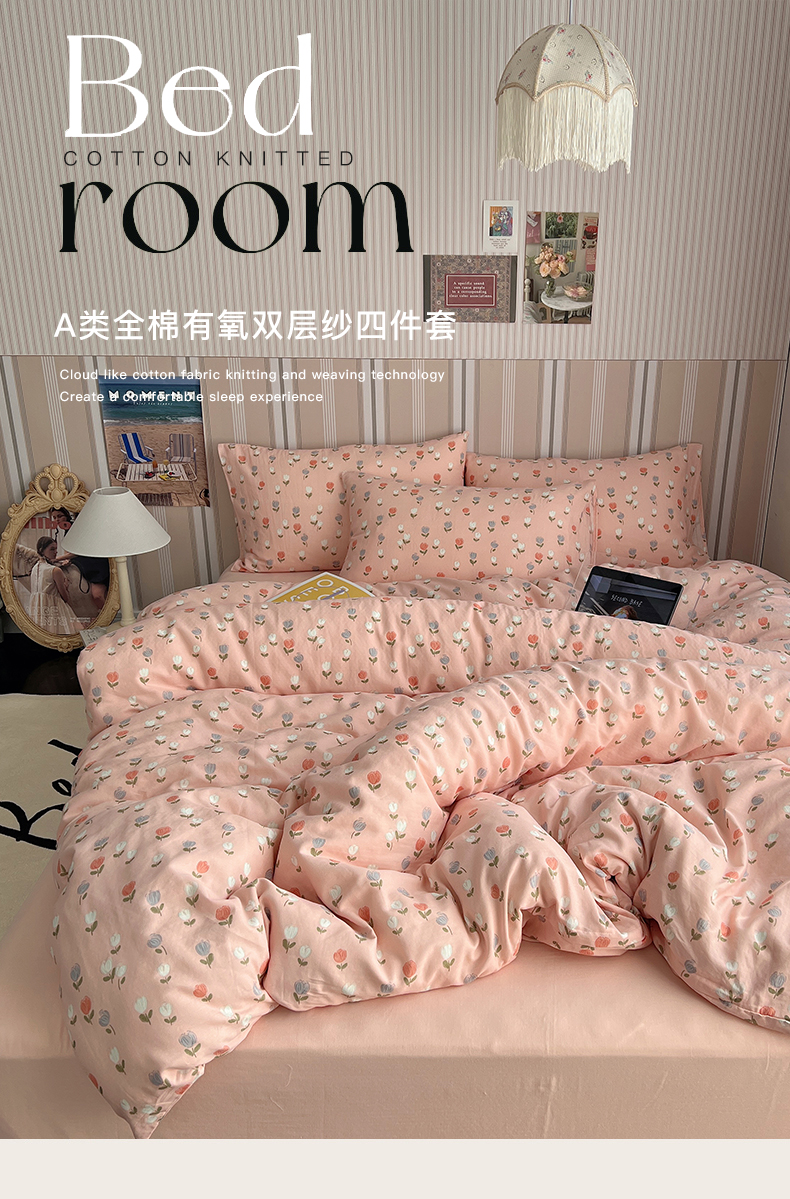 卧趣2024新款A类全棉有氧双层纱四件套 仲夏花开