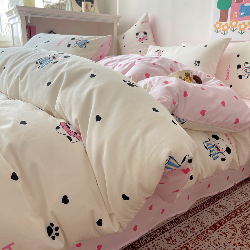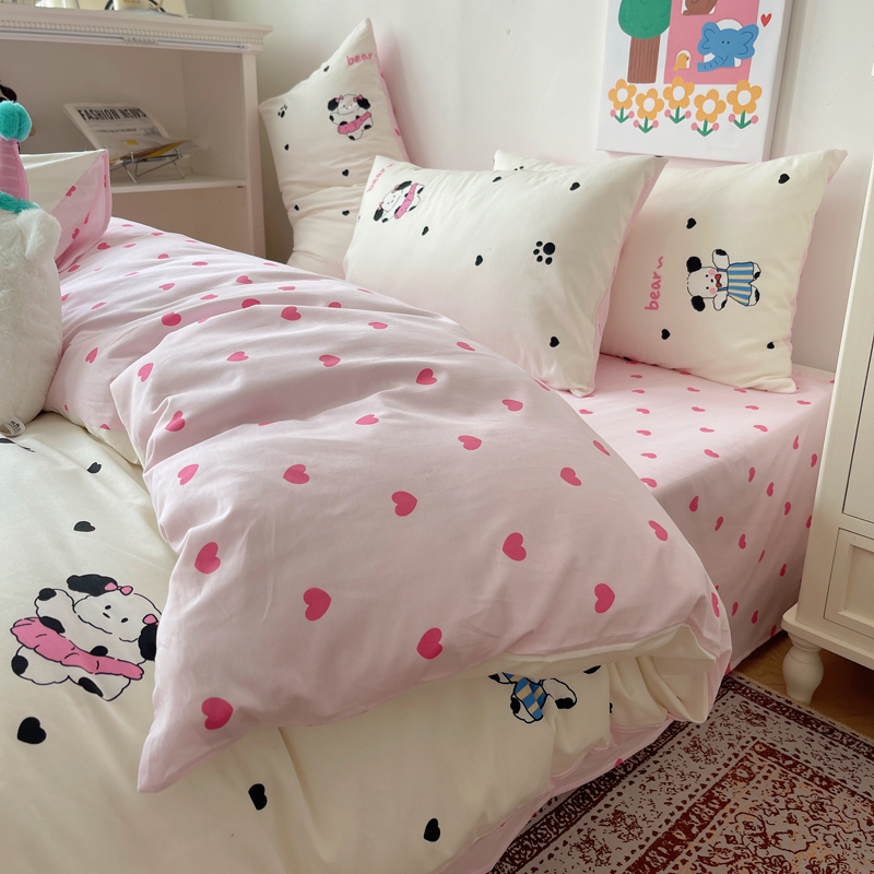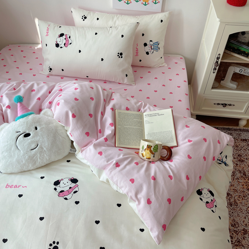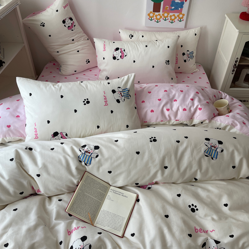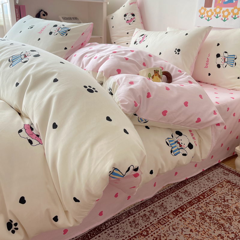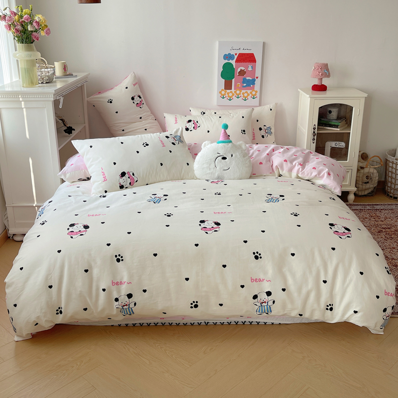 桃喜 2024新款40支13372全棉卡通印花小清新四件套 跳舞熊