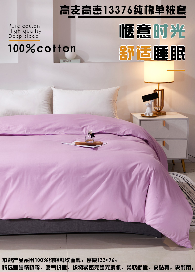 晶缦家纺 2024新款喷气全棉13376纯棉斜纹纯色多规格四件套和单品-沐色系列 单被套 沐色-浅紫