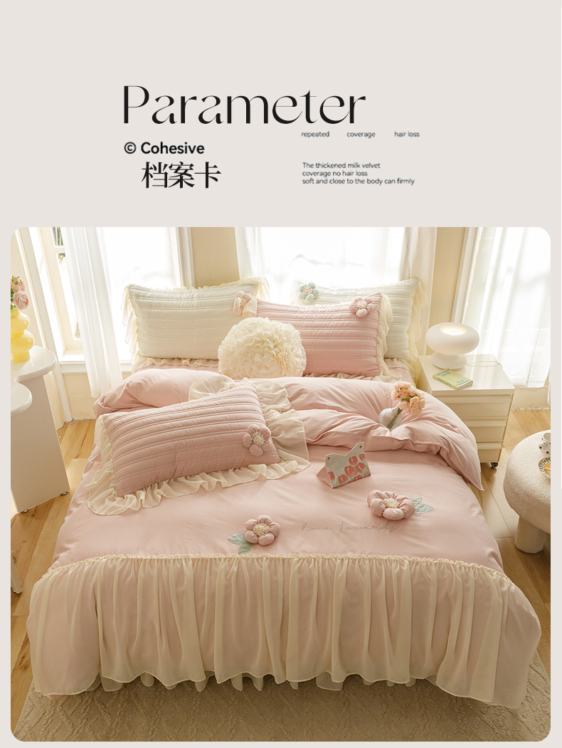 (总)胜权家纺 2024新款小香风牛奶绒夹棉床盖四件套-芭莎系列,芭莎-粉,芭莎-绿,芭莎-紫,芭莎-米