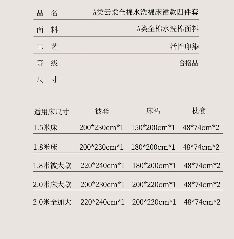 1.8床裙四件套-被套220*240cm
