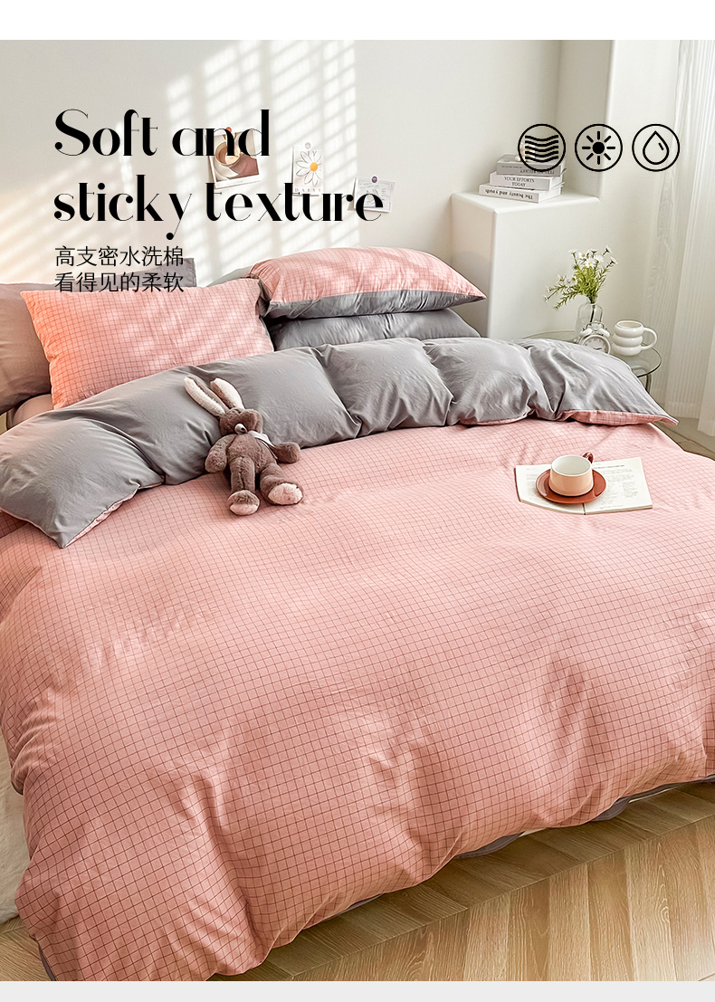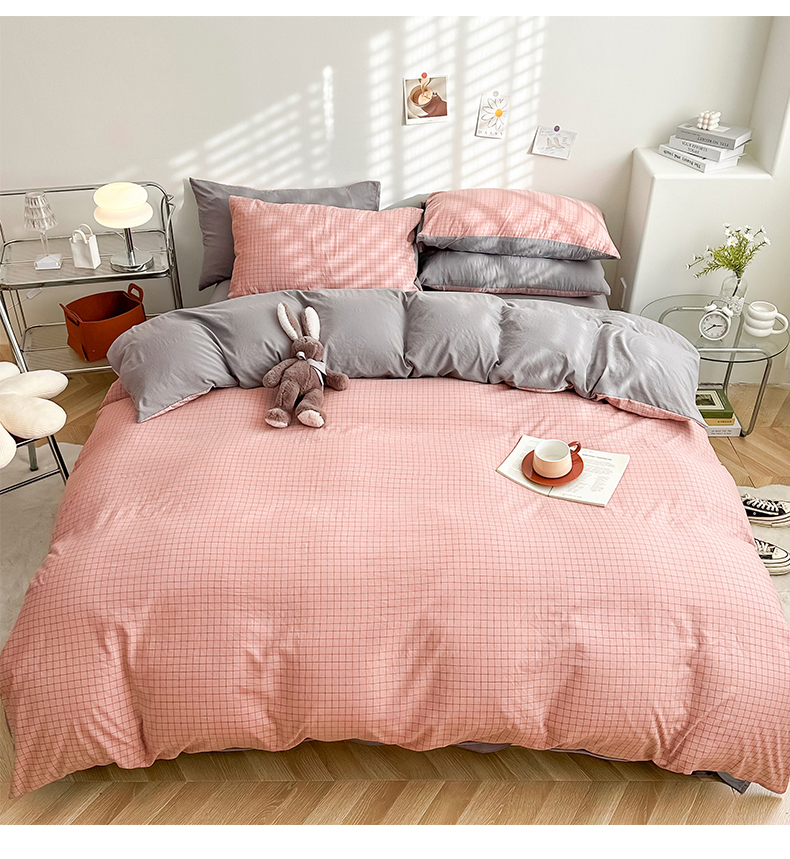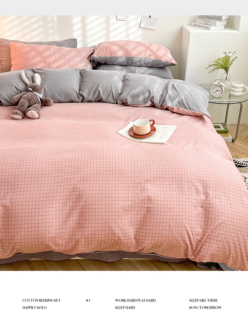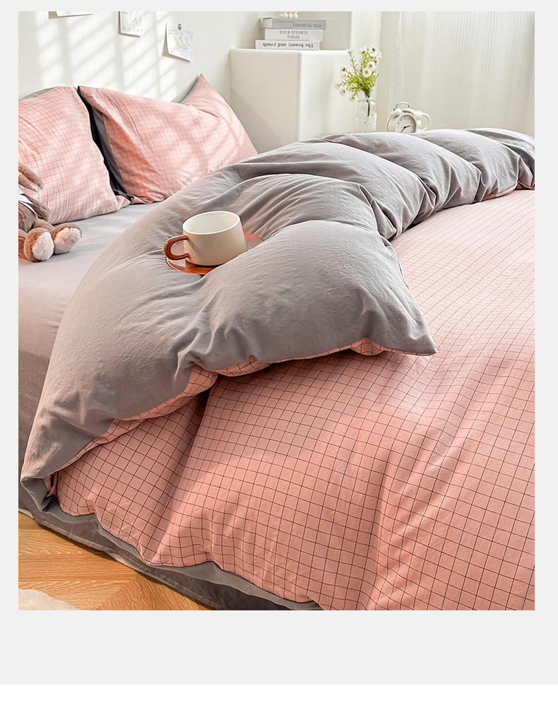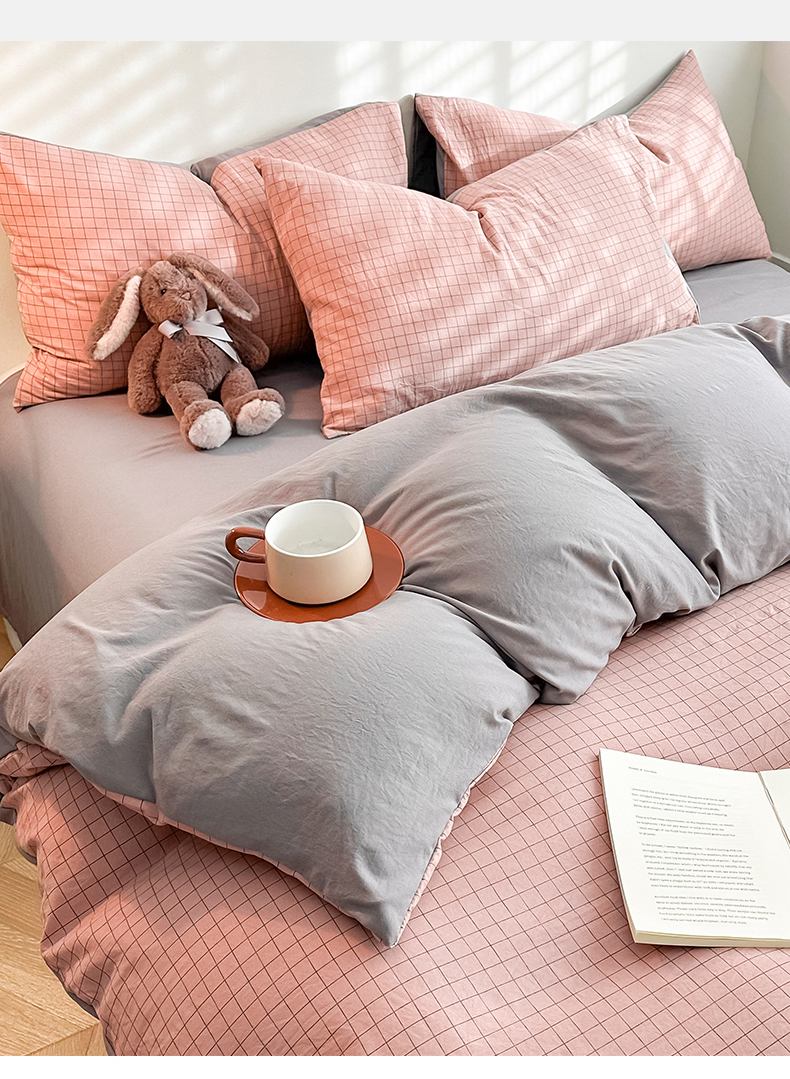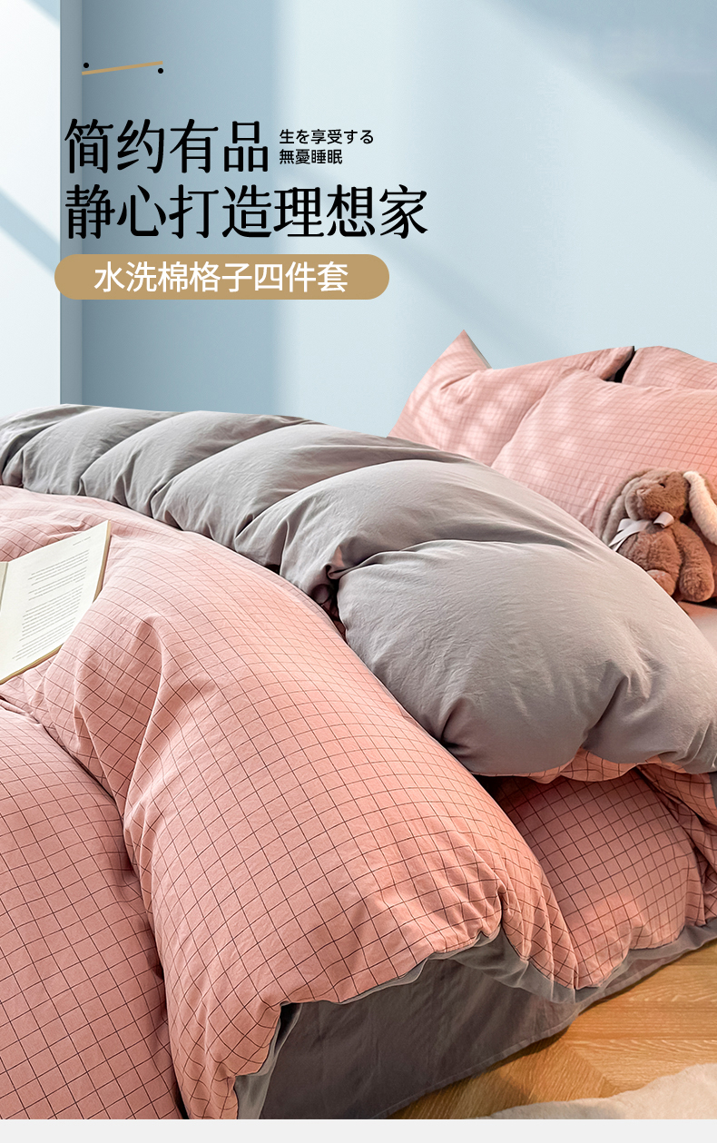 当前位置: 91家纺网 > 商品网购 > 床品套件 > 四件套 > 水洗棉四件套 > 古吉梦 2024新款水洗棉小清新印花格子系列四件套 G-豆沙格+中灰