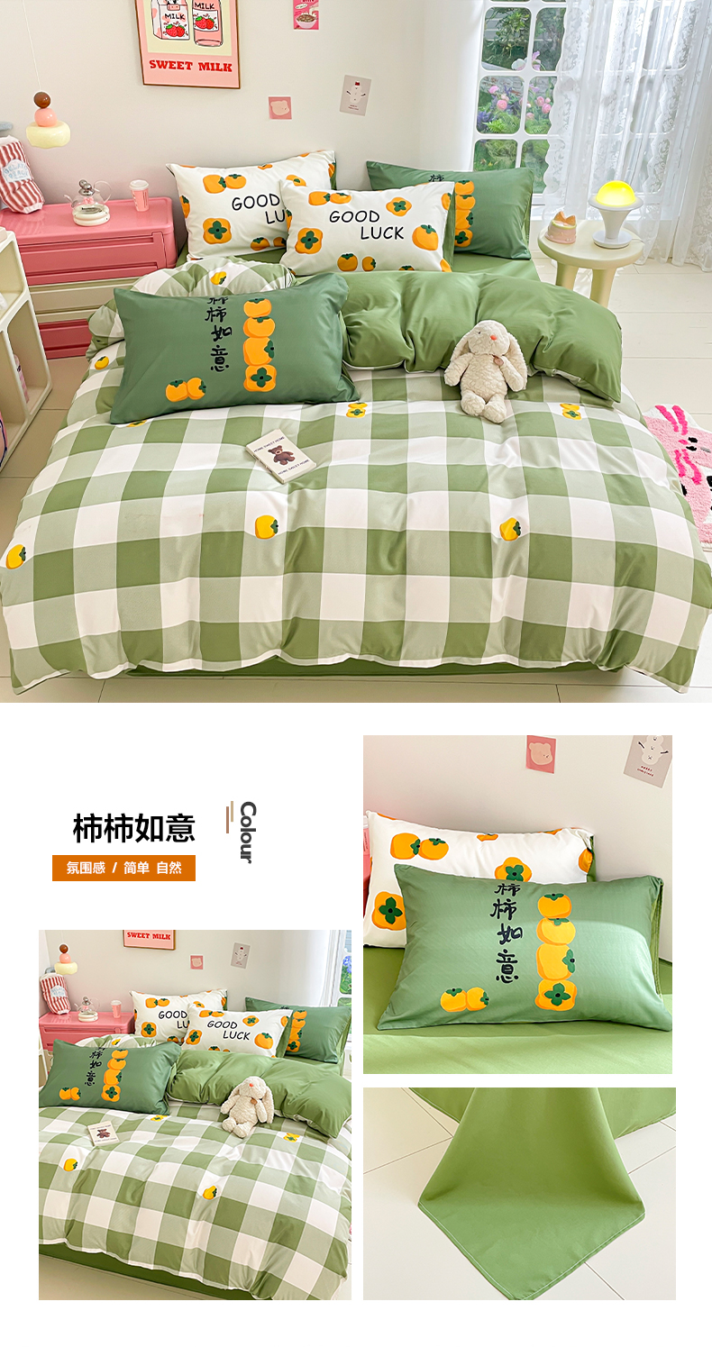 商品名称:莱米家纺 2024新款磨毛印花四件套 柿柿如意