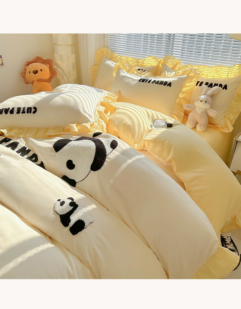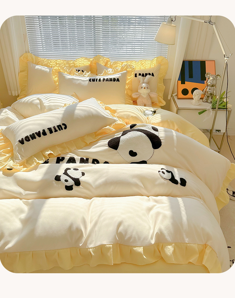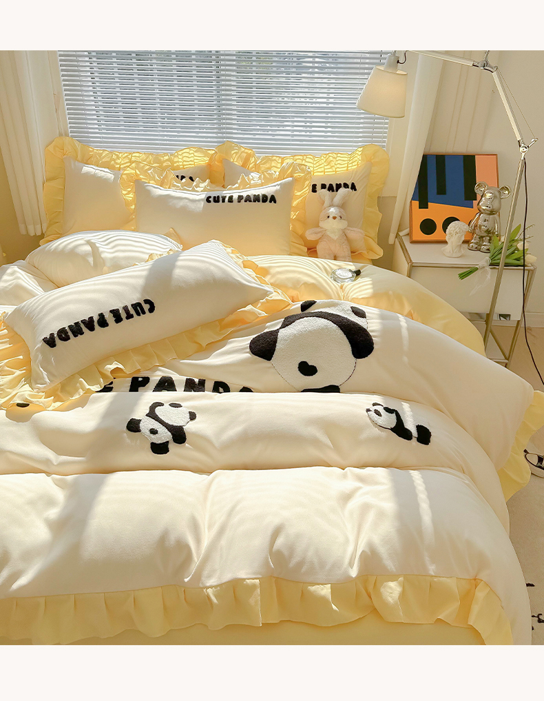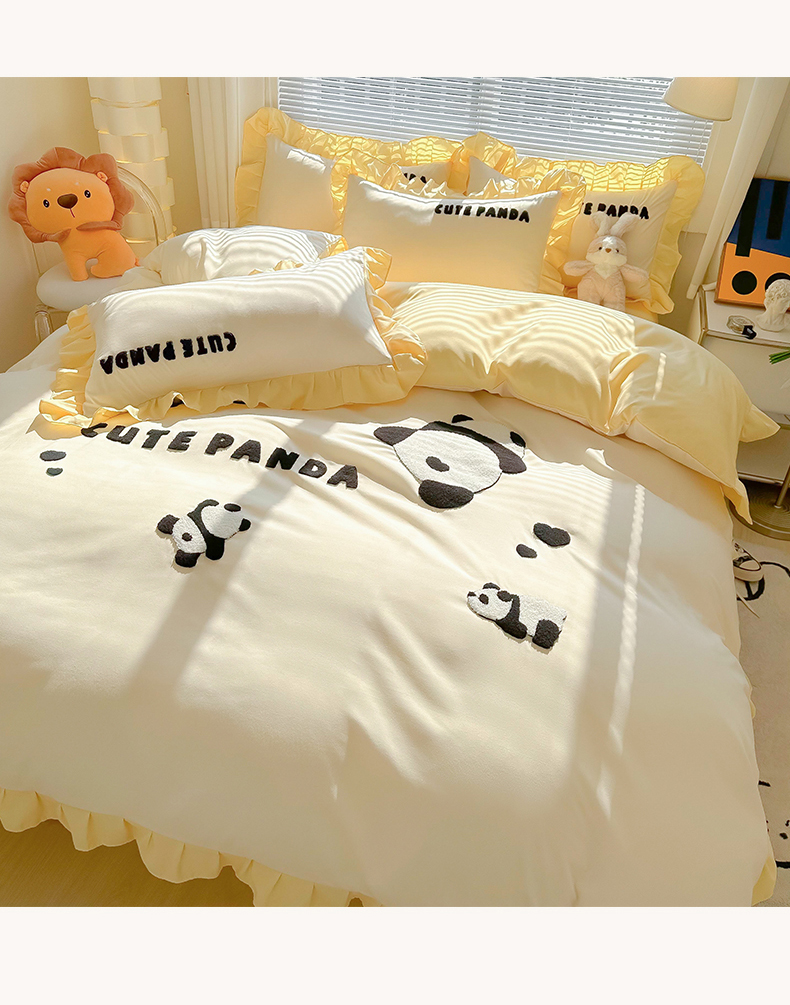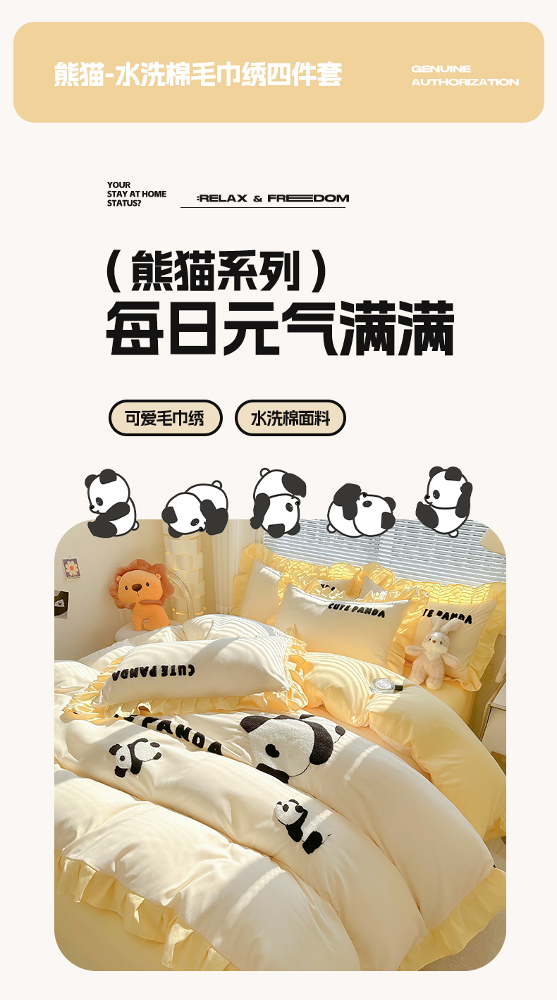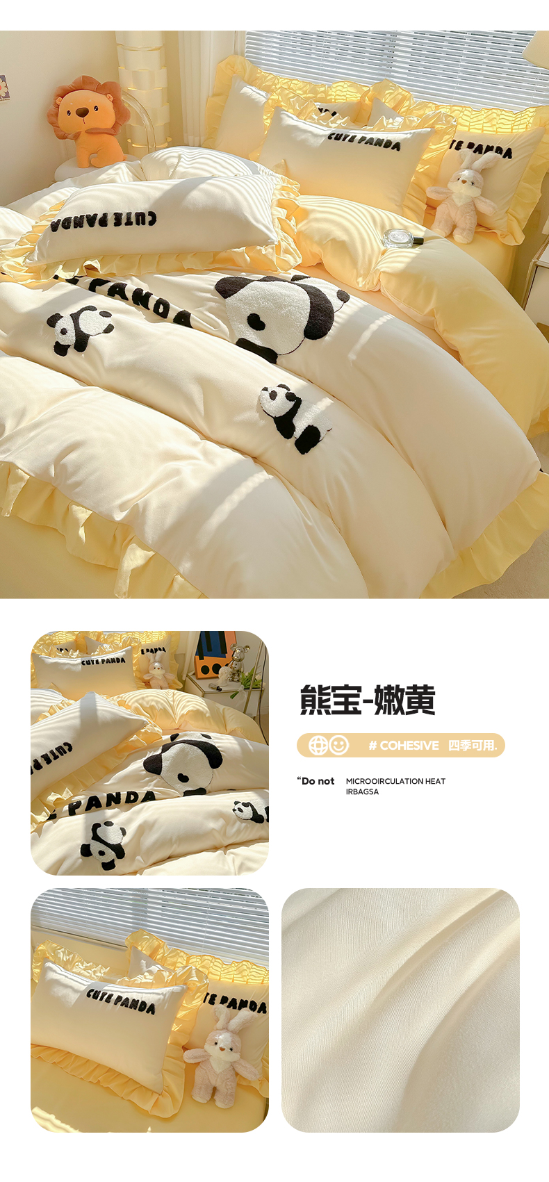 (总)韩都家居 2025新款牛奶绒毛巾绣四件套-系列一,熊猫懒懒,蛋糕猫-粉格,蛋糕猫-兰格,欢乐狗,腊肠狗,圣诞树,小白鸭
