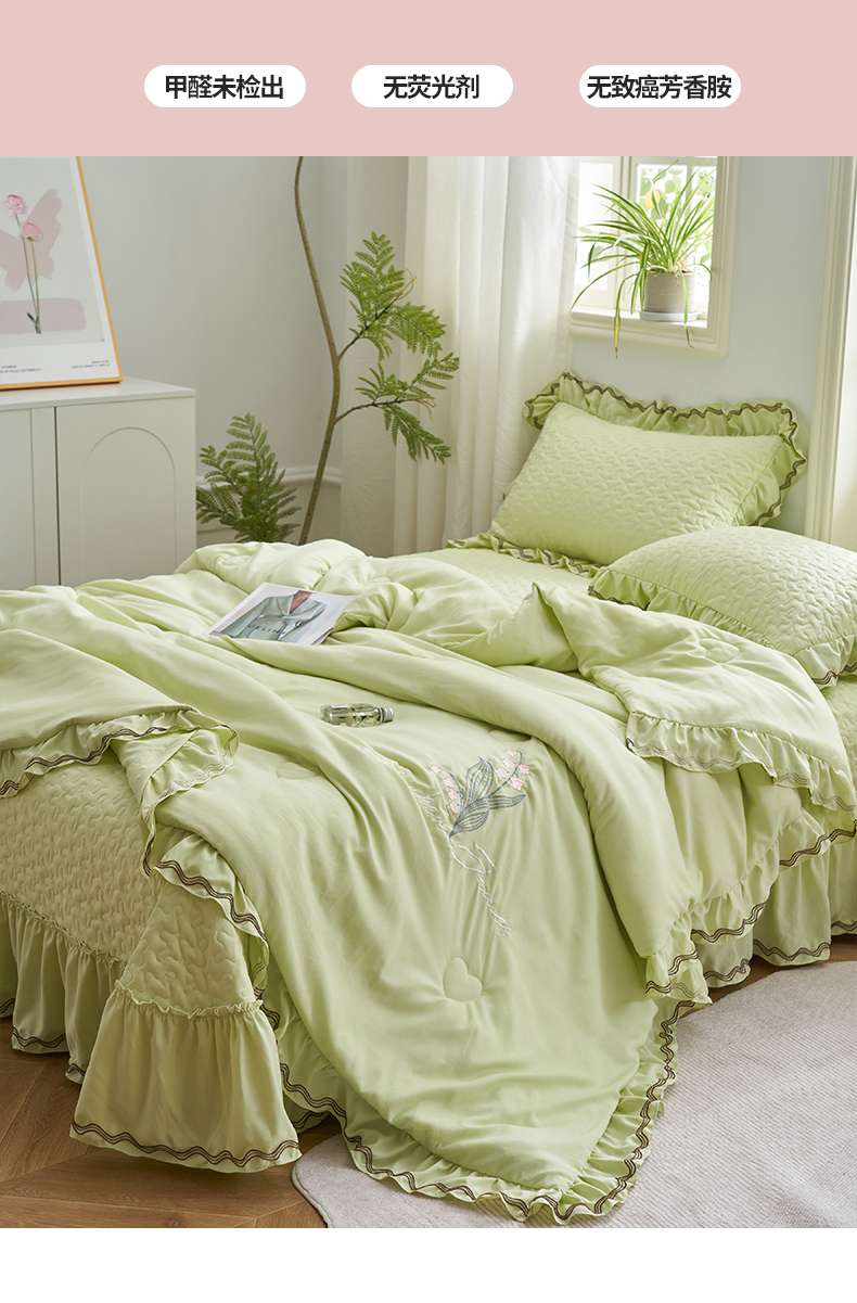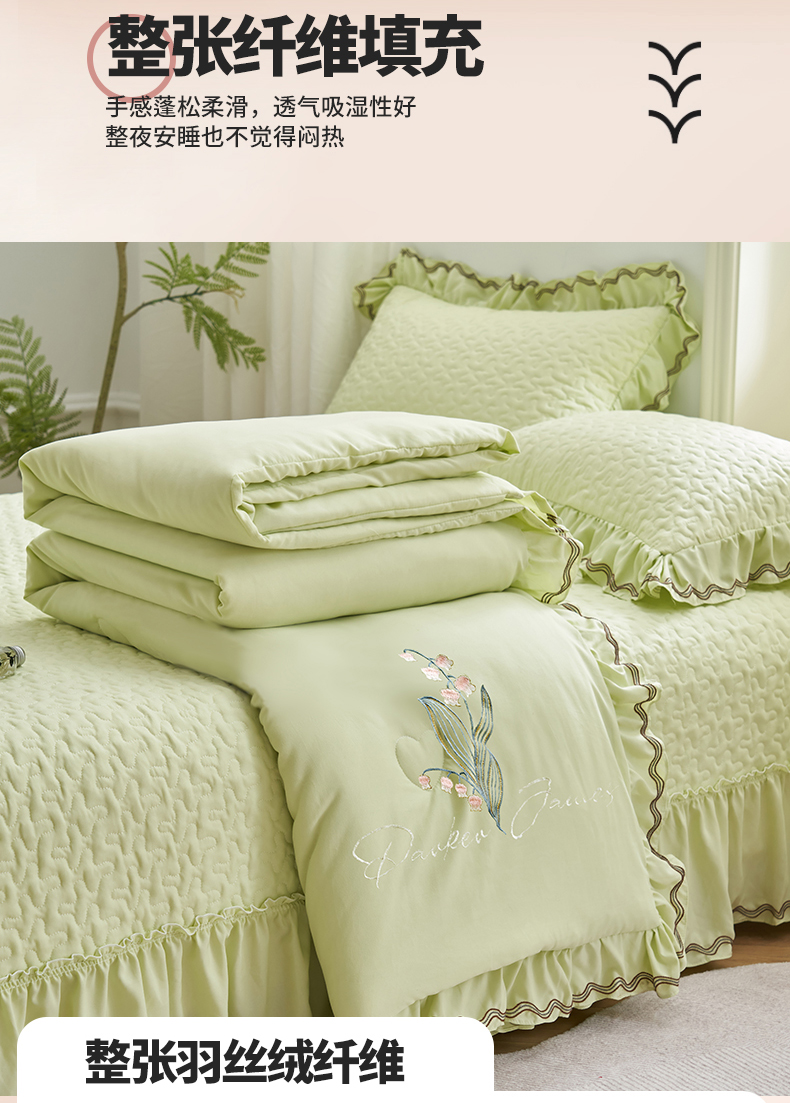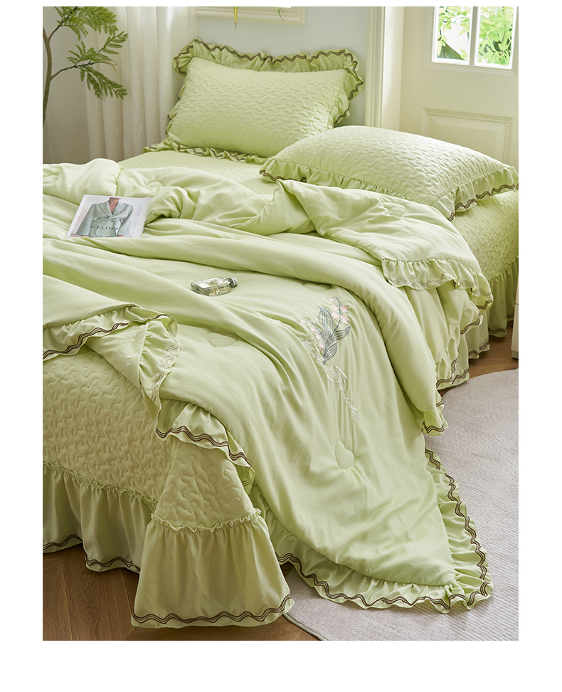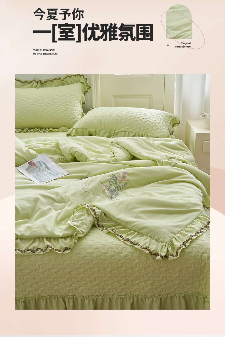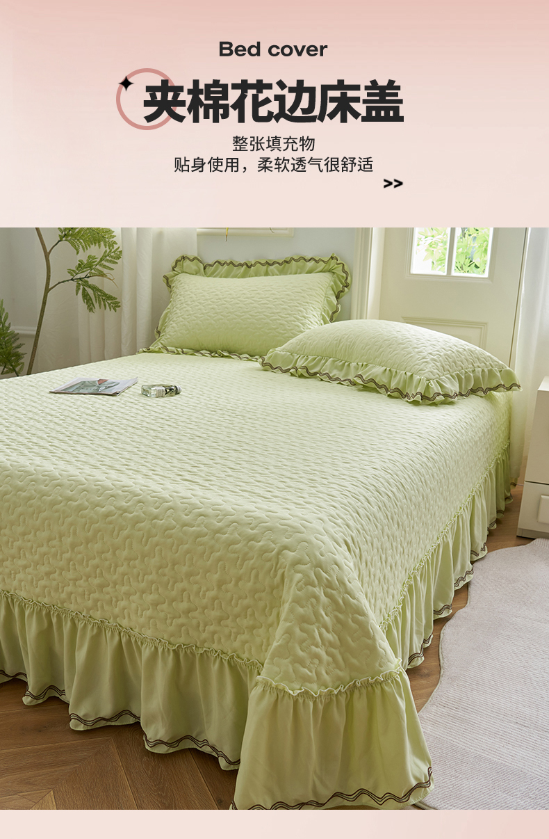 商品名称:恒爱家纺 2024新款A类针织夹棉床盖款夏被四件套-玉玲珑 芥末绿