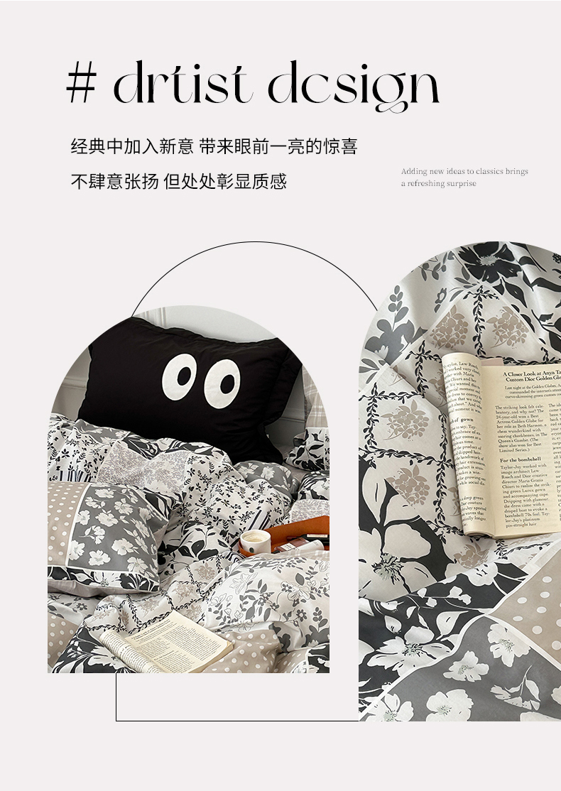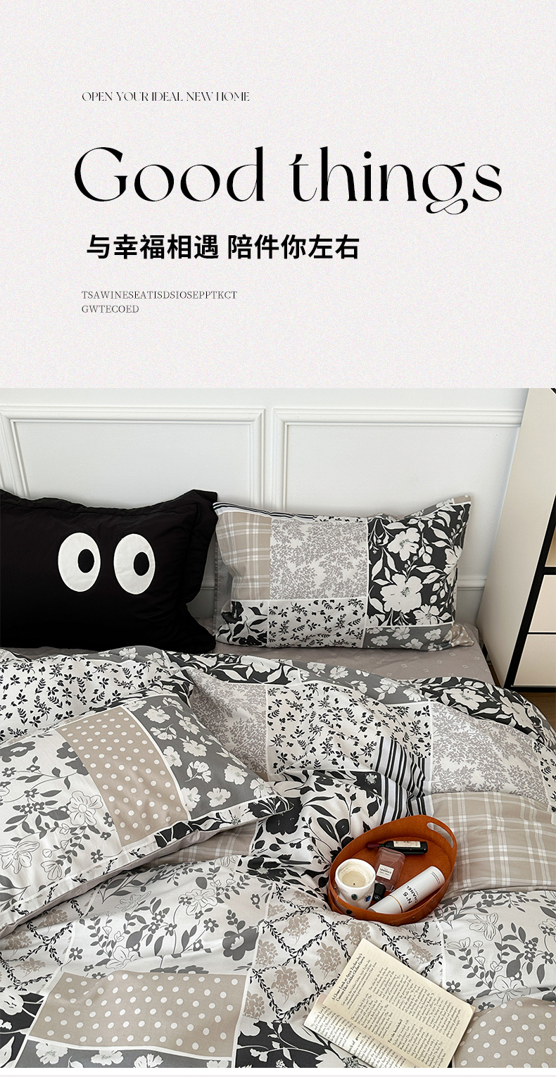 昔可家纺 2023新款全棉四件套-第六批黑色泼墨,黑色泼墨