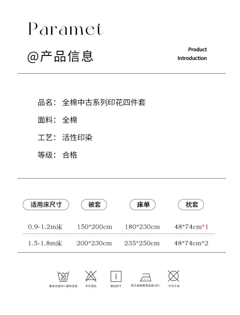 商品名称: 昔可家纺 2024新款中古系列花四件套 中古拼接花