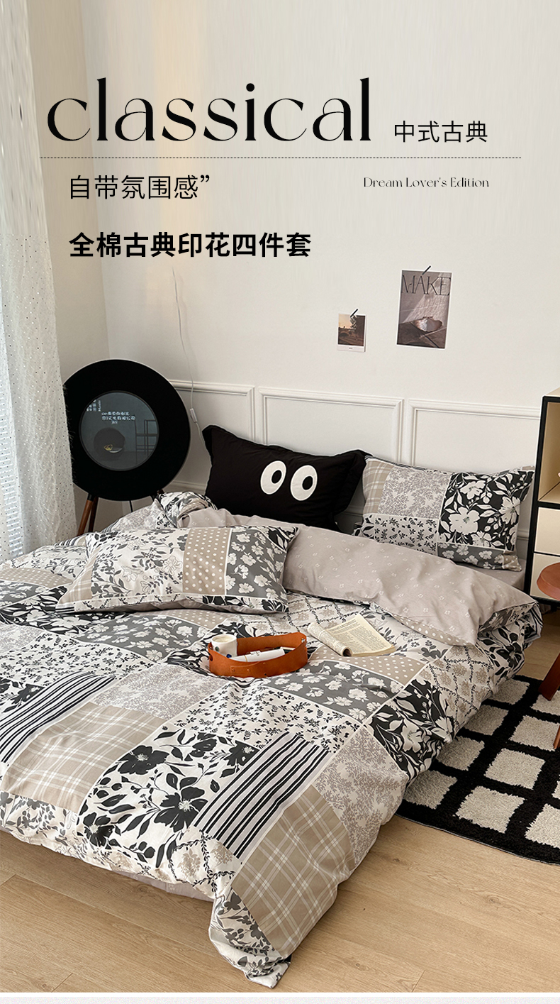 昔可家纺 2024新款中古系列花四件套 中古拼接花