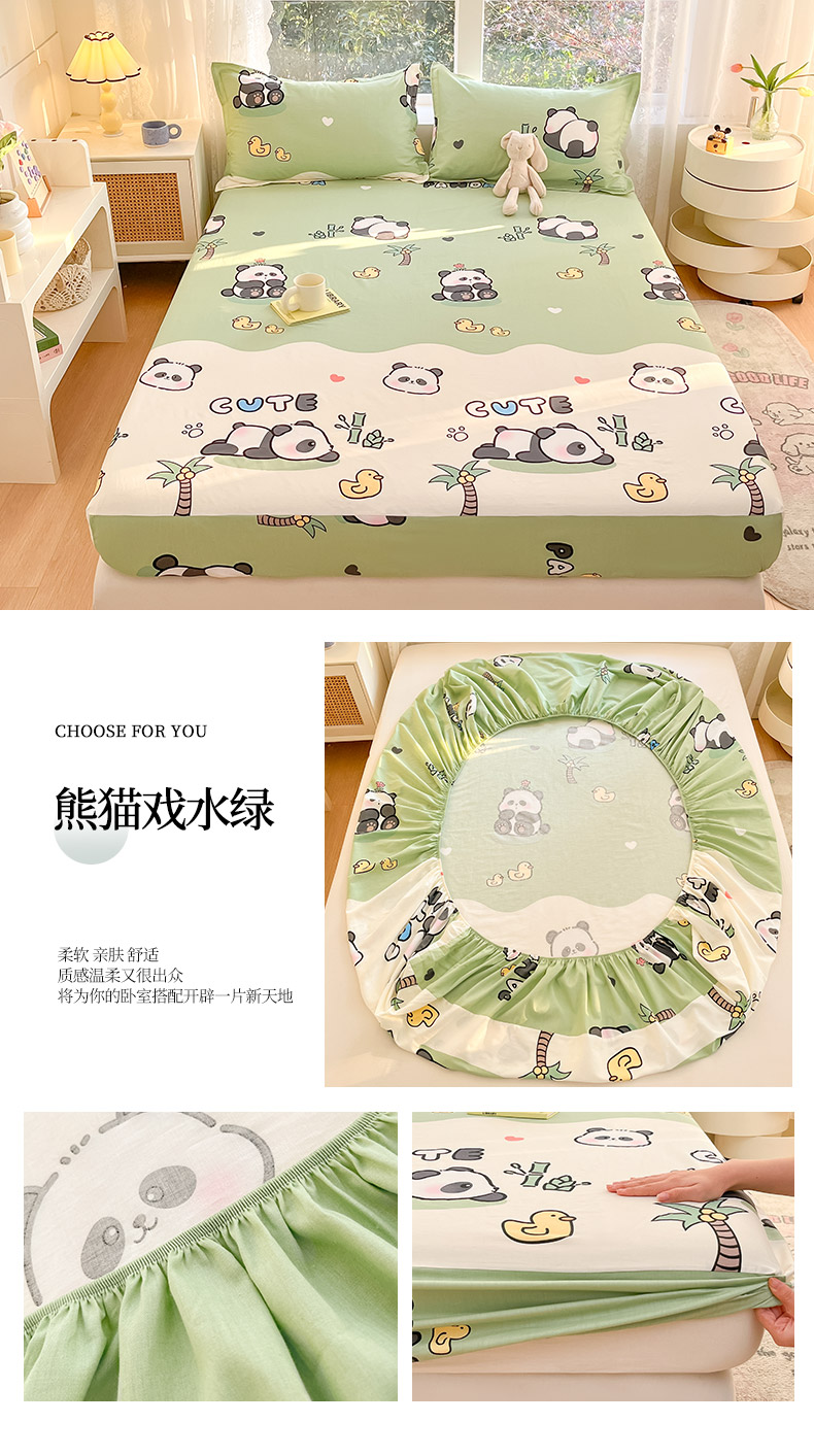 绵庭家纺 2024新款AB版12868全棉印花单床笠 熊猫戏水绿
