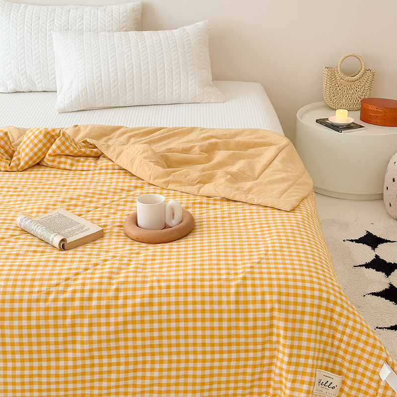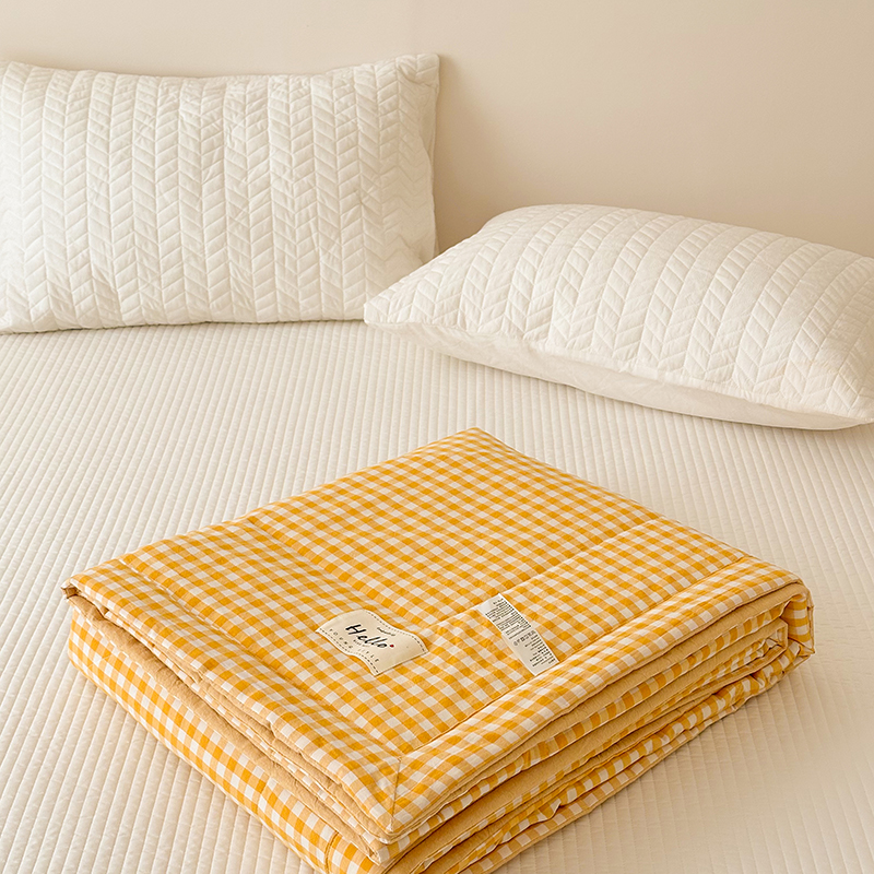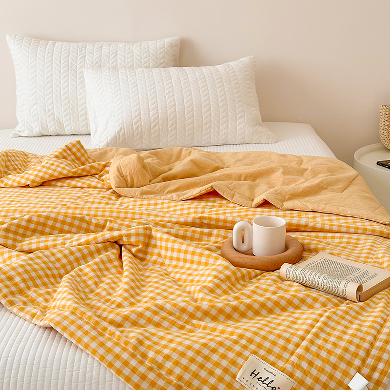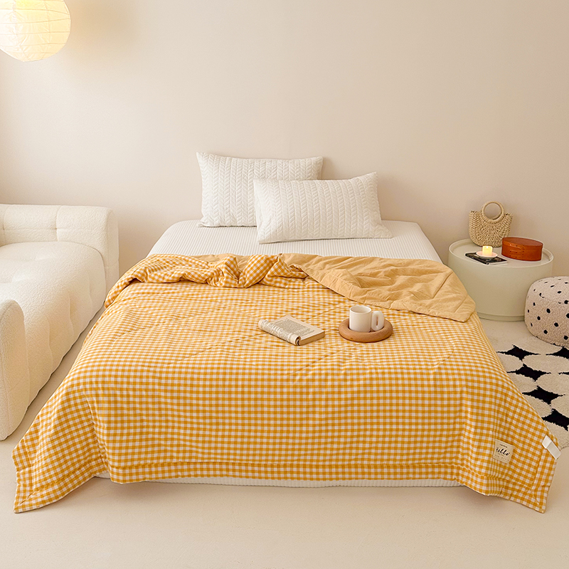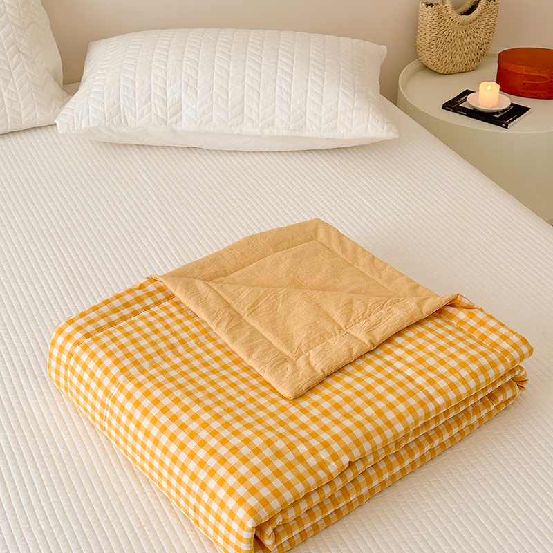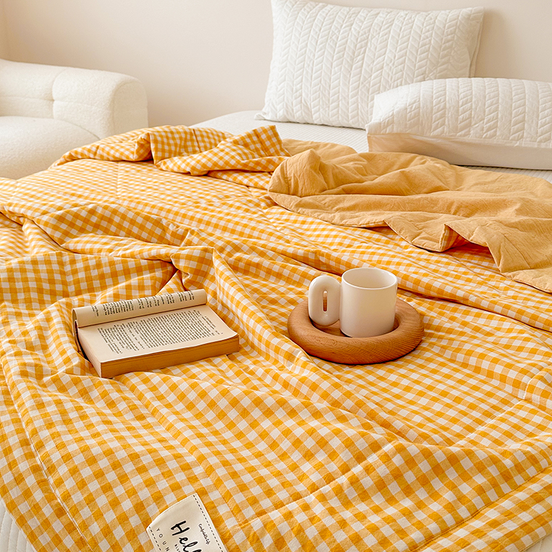 珺柔 2024新款 水洗棉全棉色织提花夏凉被夏被空调被 黄格