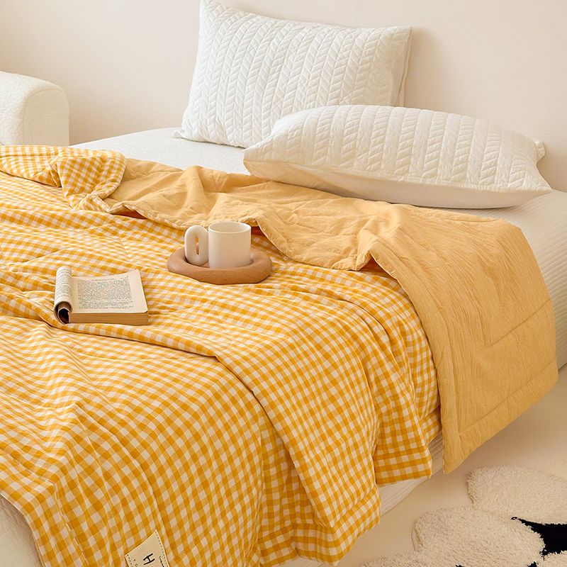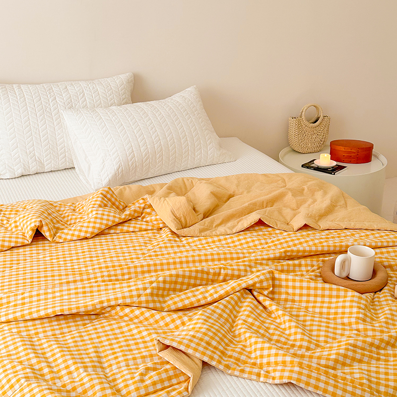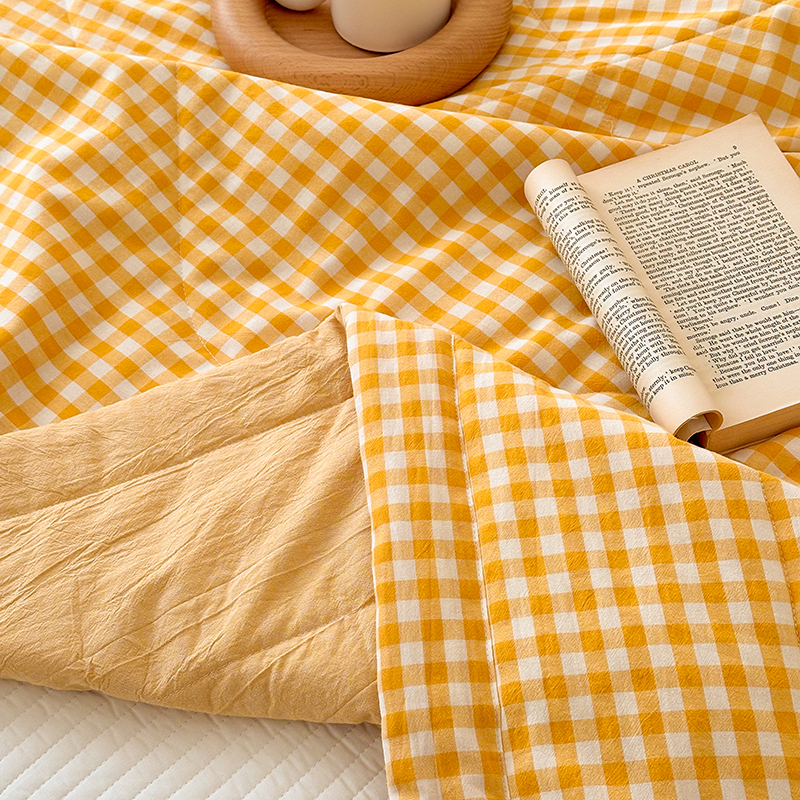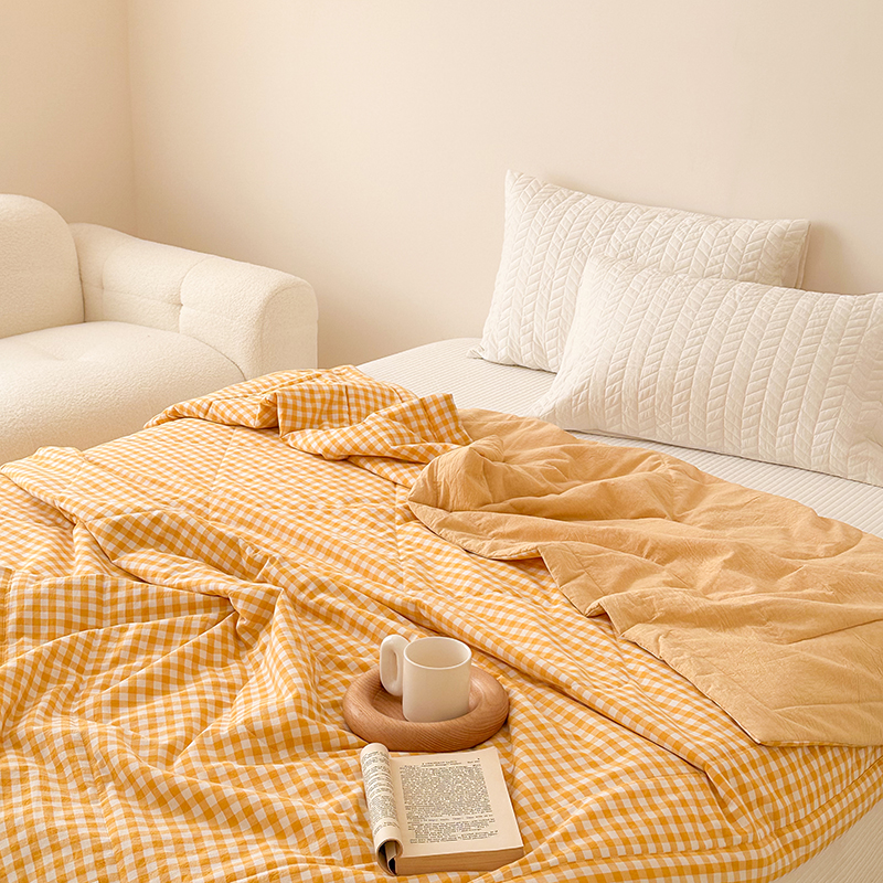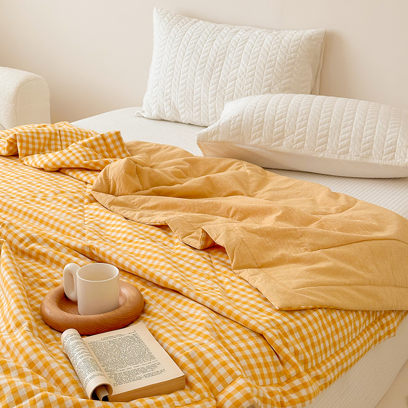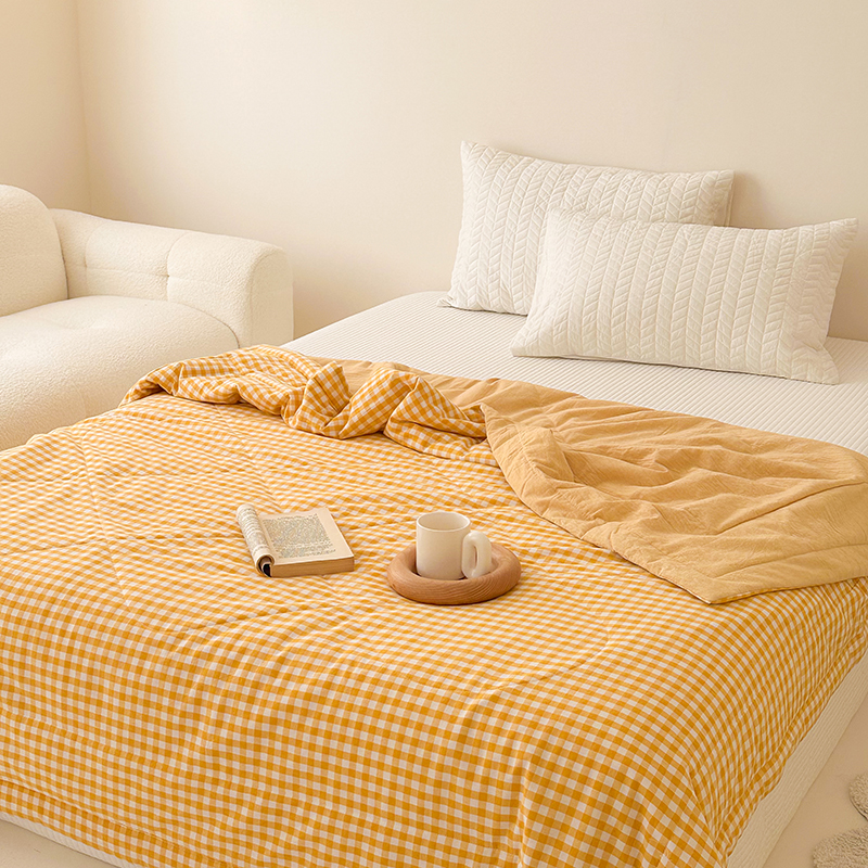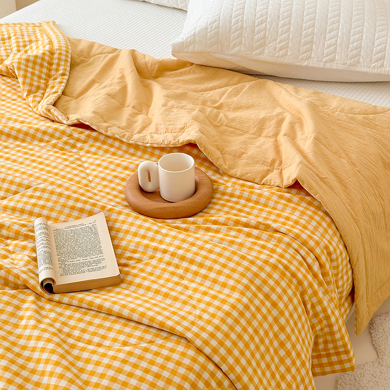 珺柔 2024新款 水洗棉全棉色织提花夏凉被夏被空调被 黄格