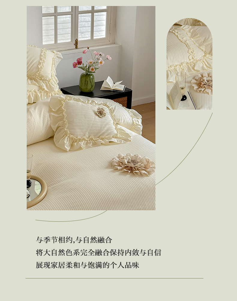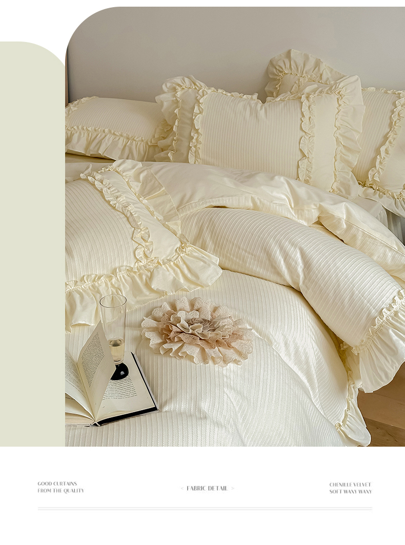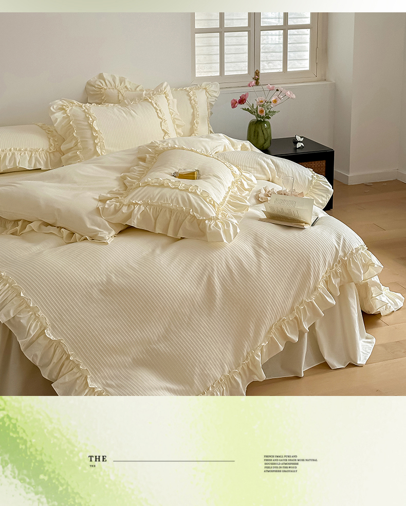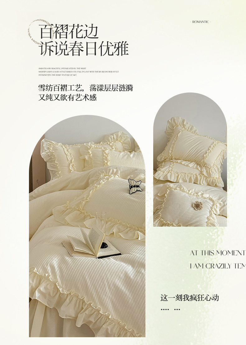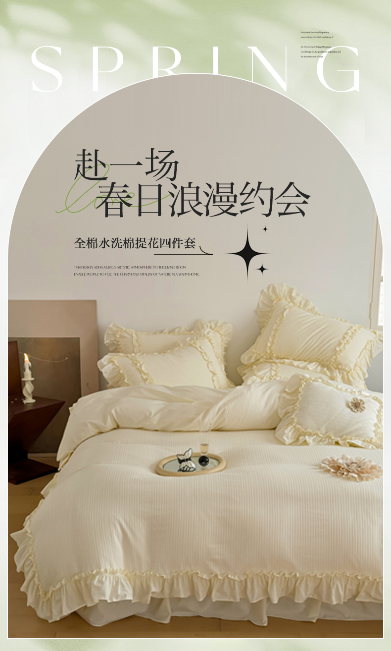 (总)婳庭家居 2025新款双层纱褶皱花边款四件套,春野来信,繁梦,玫瑰故事,清秋,云上,紫萱