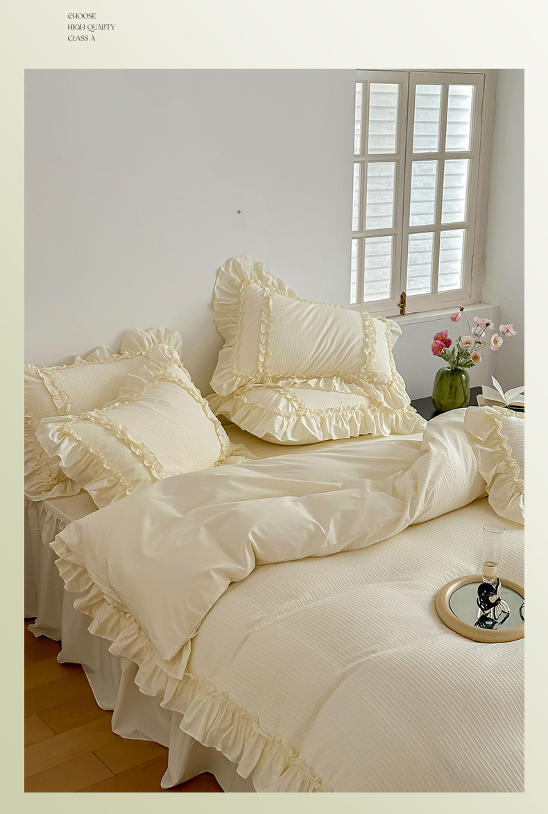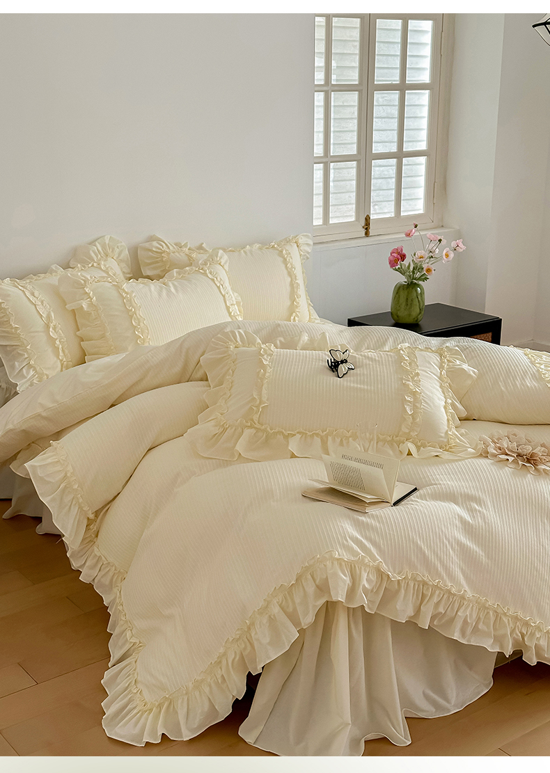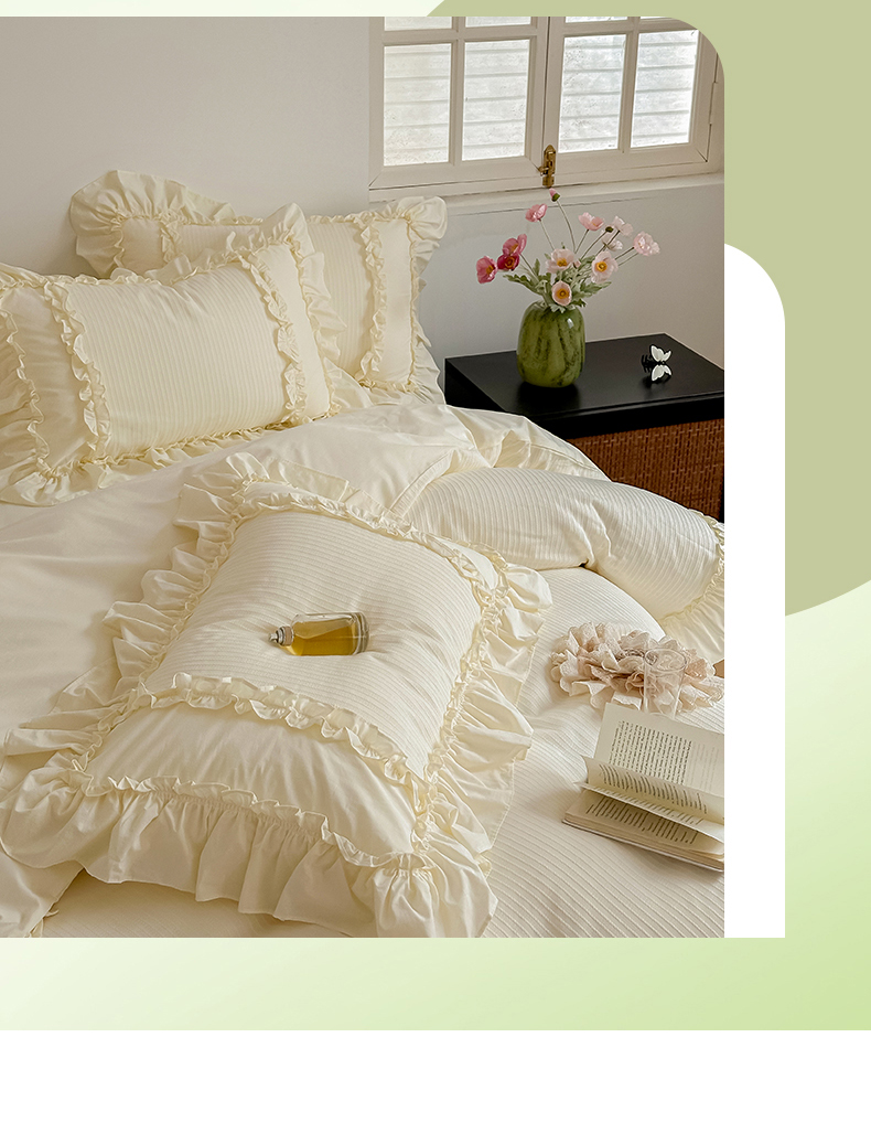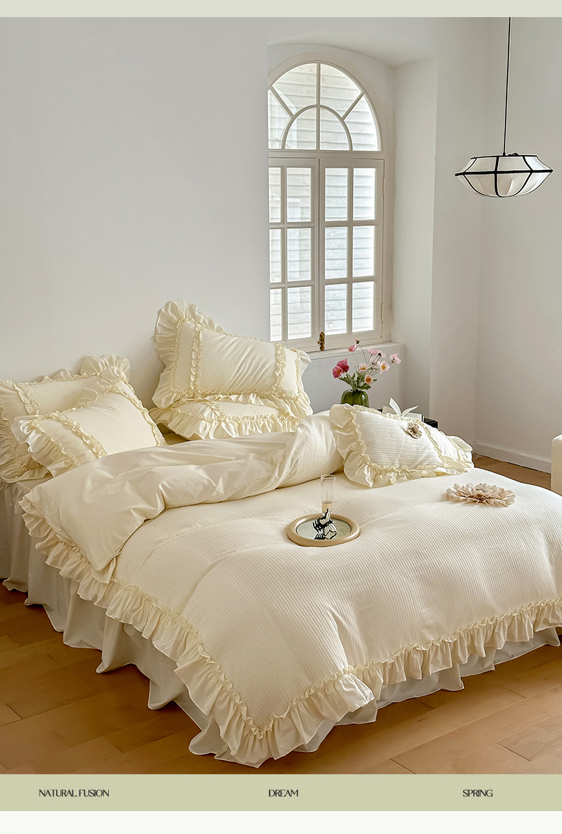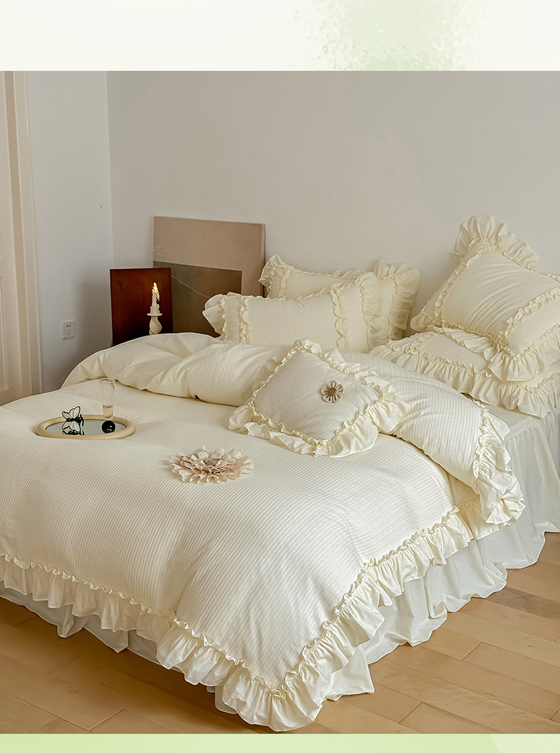 (总)婳庭家居 2025新款双层纱褶皱花边款四件套,春野来信,繁梦,玫瑰故事,清秋,云上,紫萱