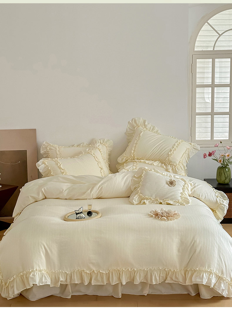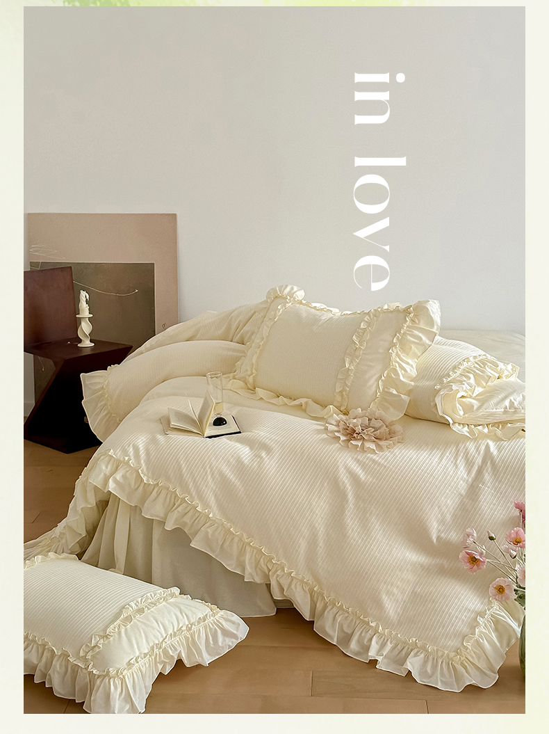 婳庭家居 2024新款全棉水洗棉提花四件套-心动系列 心动-浅黄