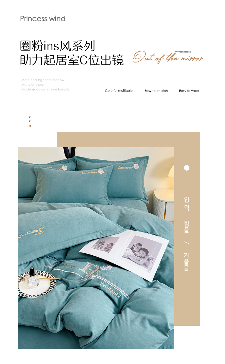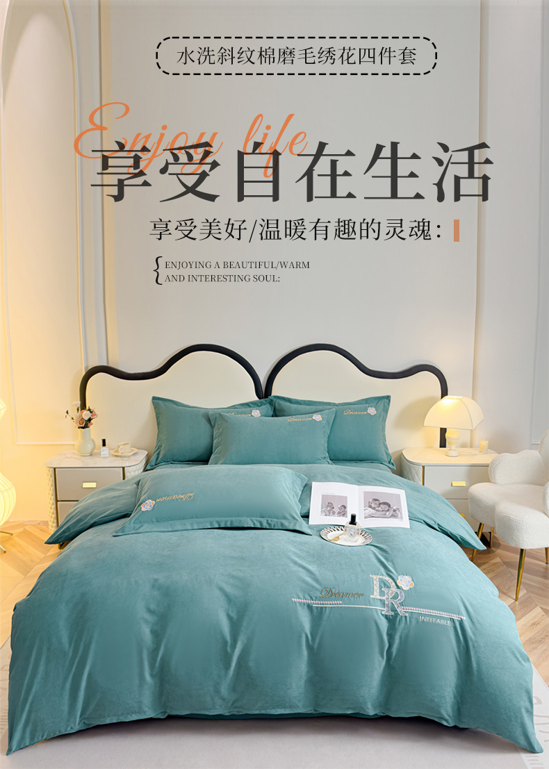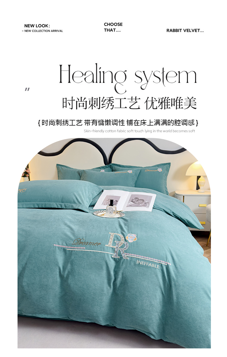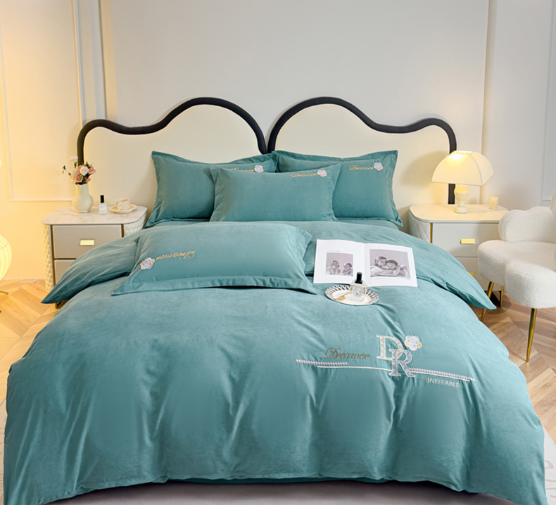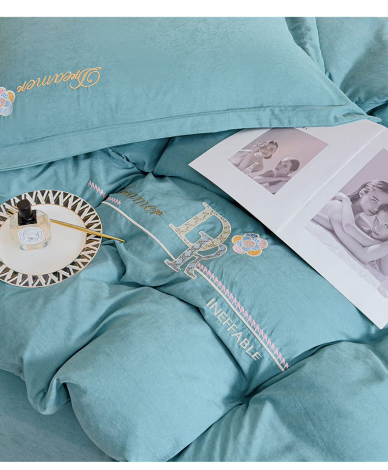 鑫利来家纺 2024新款斜纹蛋白棉绣花四件套 梦想系列 梦想-松石绿