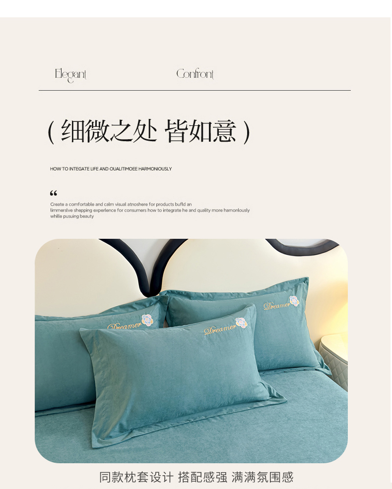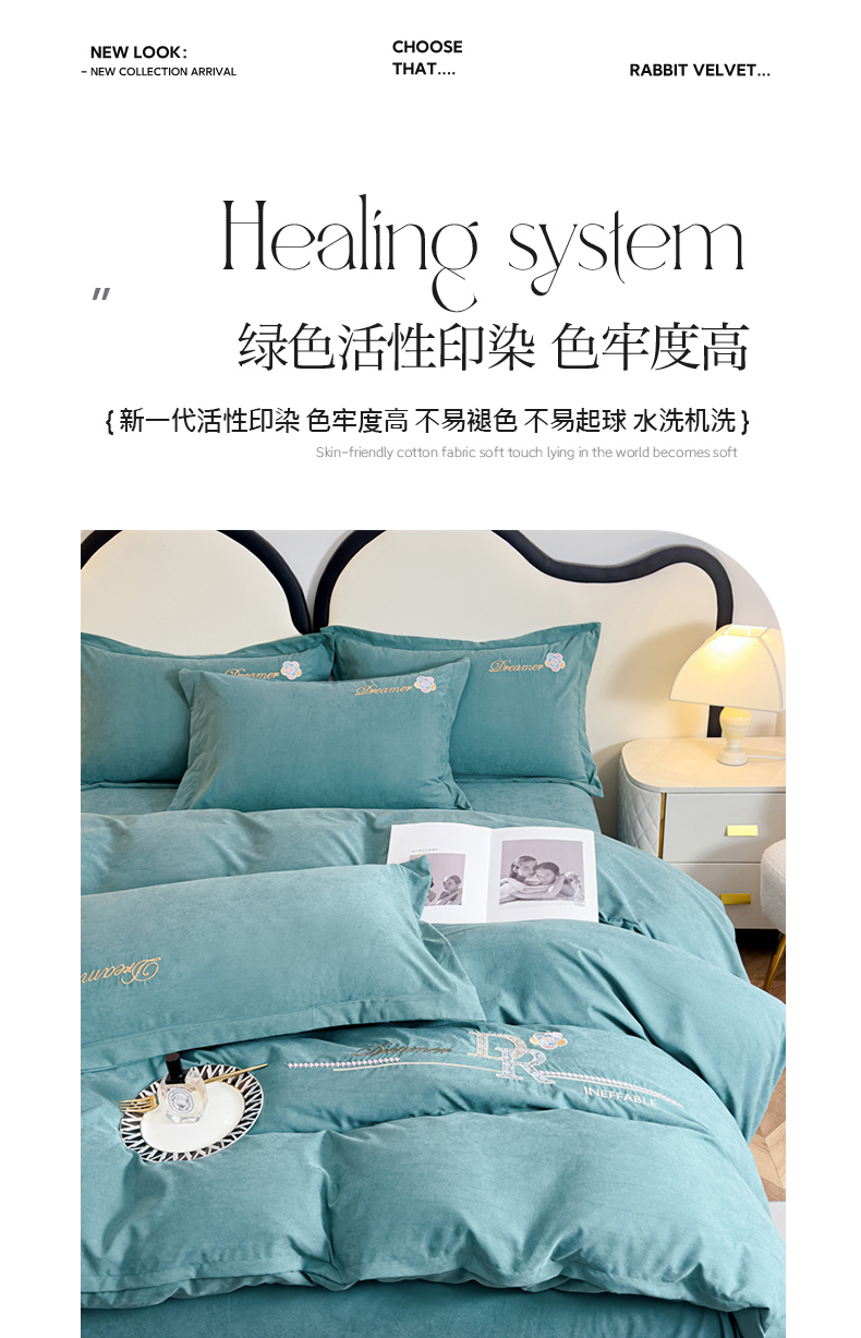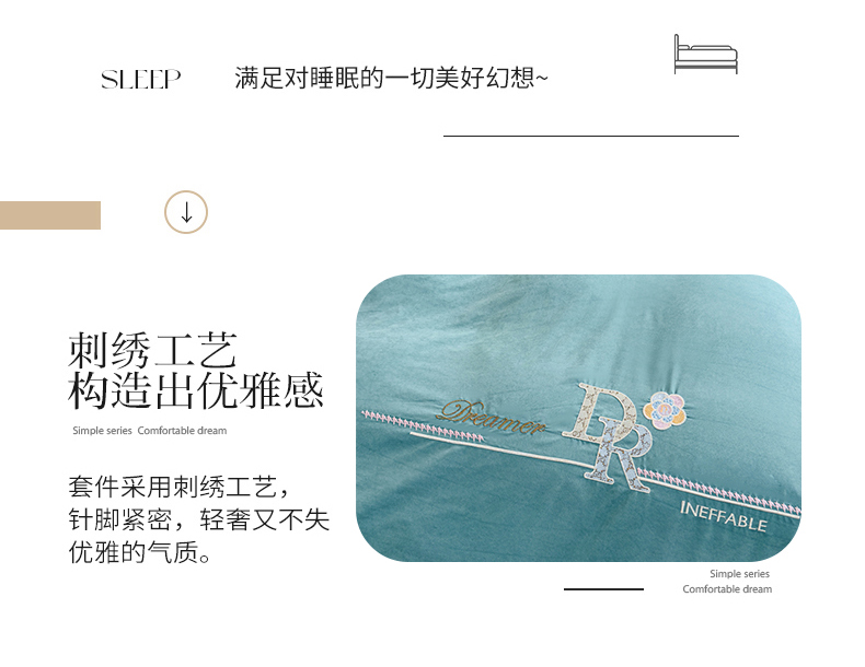 商品名称:鑫利来家纺 2024新款斜纹蛋白棉绣花四件套 梦想系列 梦想-松石绿