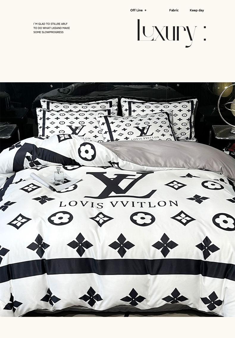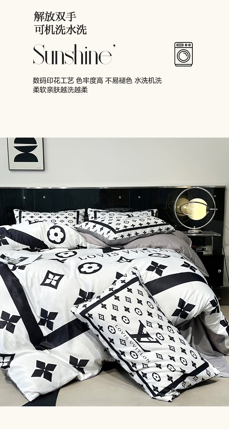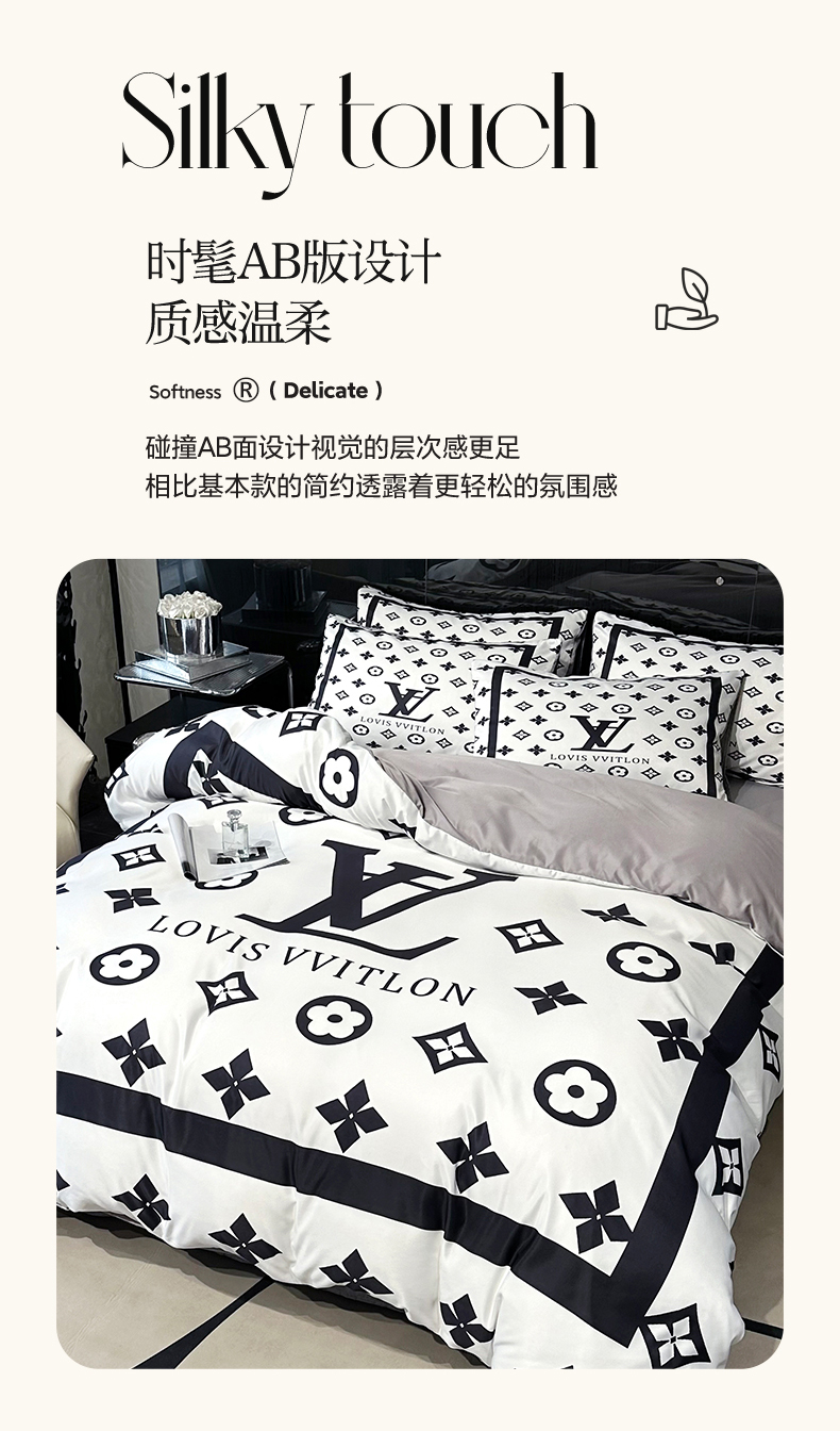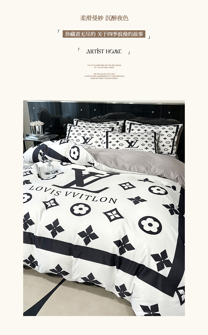 (总)色鬼布艺高端家居主号 2025新款轻奢亲肤纯棉数码印花网红热款四件套,豹纹香,白金V,白香花,大H,黑白迪,黑白V,灰迪,咖古,克莱因,慕斯小姐,山茶花,星空