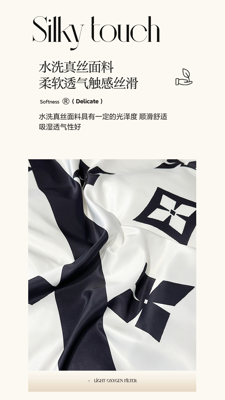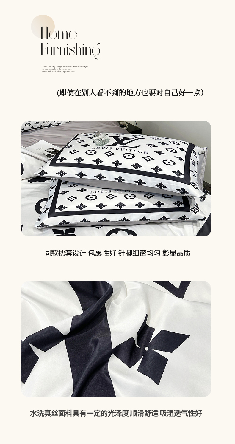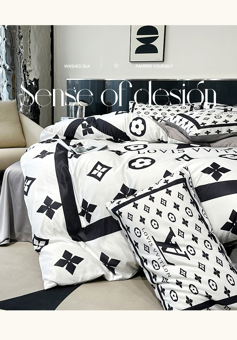色鬼布艺 2024新款水洗真丝轻奢系列数码印花四件套 路易白